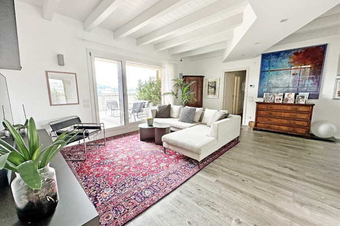 La terrazza principale stata staticamente armata per accogliere una grande vasca idromassaggio riscaldata per 6 persone, dotata di ampio tendone solare elettrico, pavimentazioni in gres galleggiante, area prazo e salotto esterni, piantumazione con irrigazione automatica.