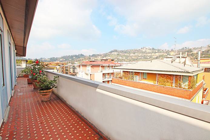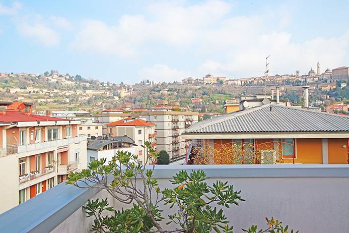 - BERGAMO _ SANTA LUCIA Prestigioso attico panoramico vista citt alta di mq 170 dislocato su unico livello dotato di 100 mq di terrazze, cantina e ampia autorimessa.