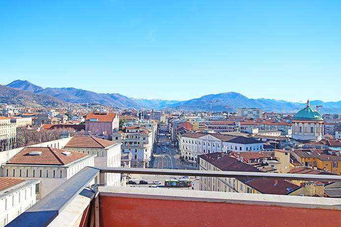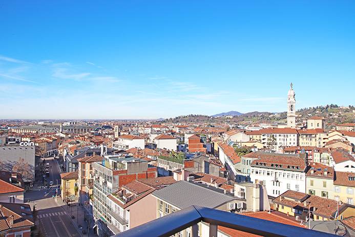 - BERGAMO _ CENTRALISSIMO Prestigioso attico super panoramico di mq 200 dislocato su unico livello dotato di 90 mq di terrazze, 2 cantine, solaio e autorimessa.