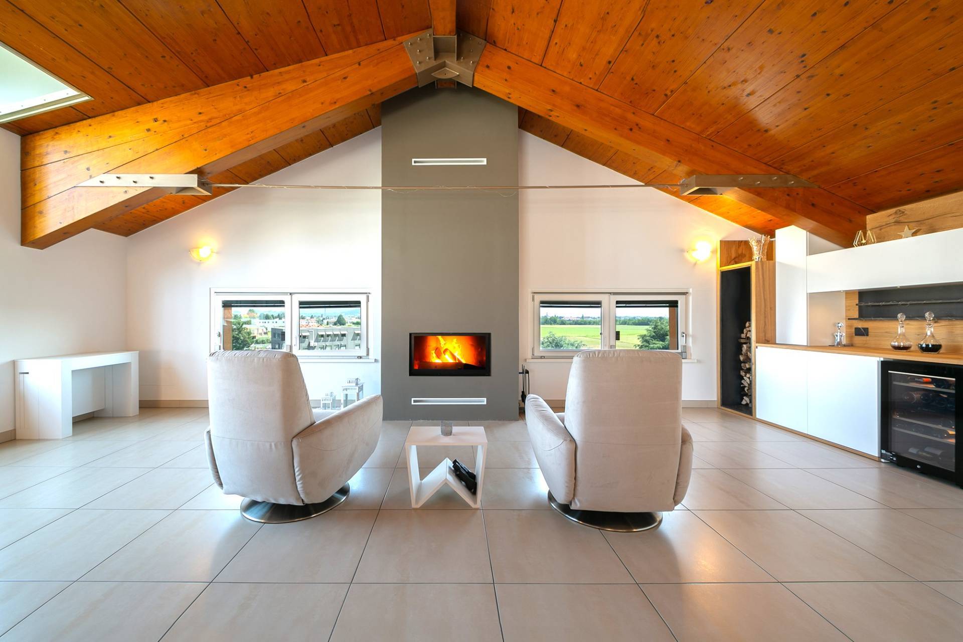 Inoltre negli ultimi due anni sono stati eseguiti i seguenti lavori tutti documentabili : Rifacimento della pavimentazione del terrazzo Pannelli Solari ( 16400 Euro) Antifurto Connesso in rete (1640 Euro) Condizionatori 2 split in sala e 3 in camera e nei due studi (14000Euro) Camino e canna fumaria (9000Euro) Serramenti pi tapparelle motorizzate (44000Euro) Mobili su Misura (71000 Euro) Colonnina di ricarica per auto elettrica Situato in una zona tranquilla e ben servita, questo attico rappresenta la soluzione ideale per chi cerca una casa di prestigio e di alto livello.
