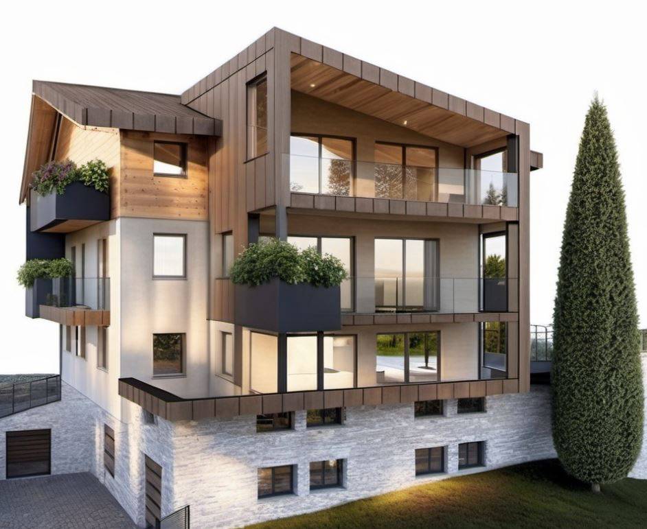 Unarchitettura moderna che si integra con i colori e i materiali della montagna.