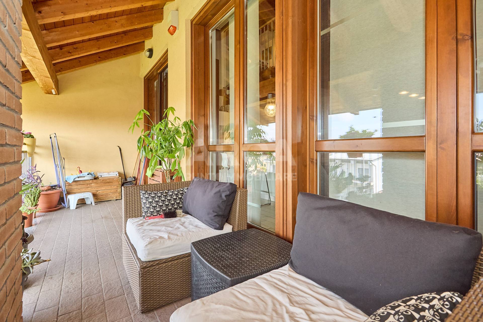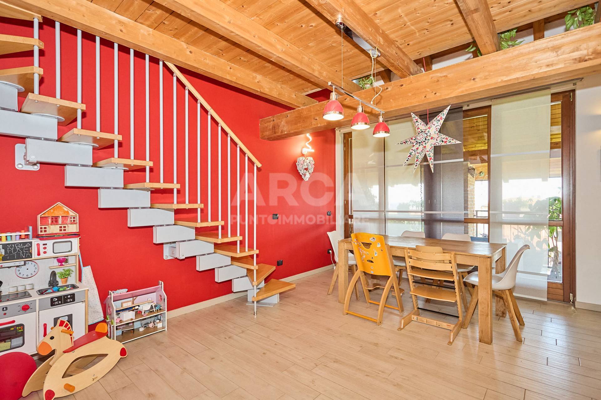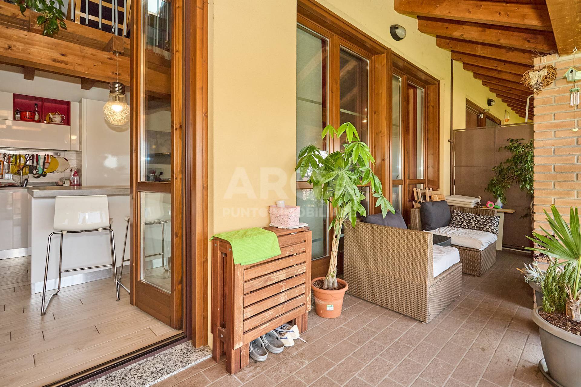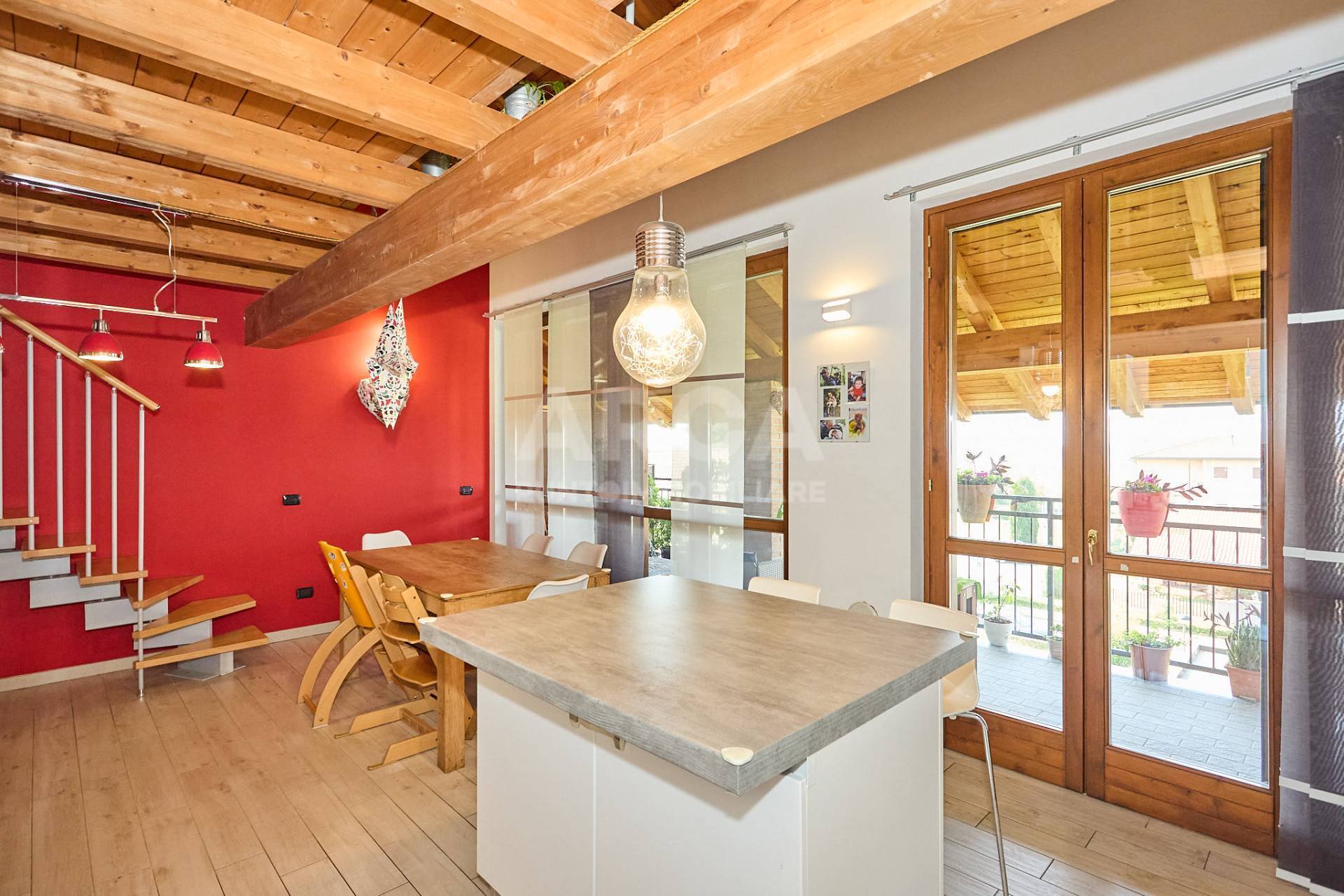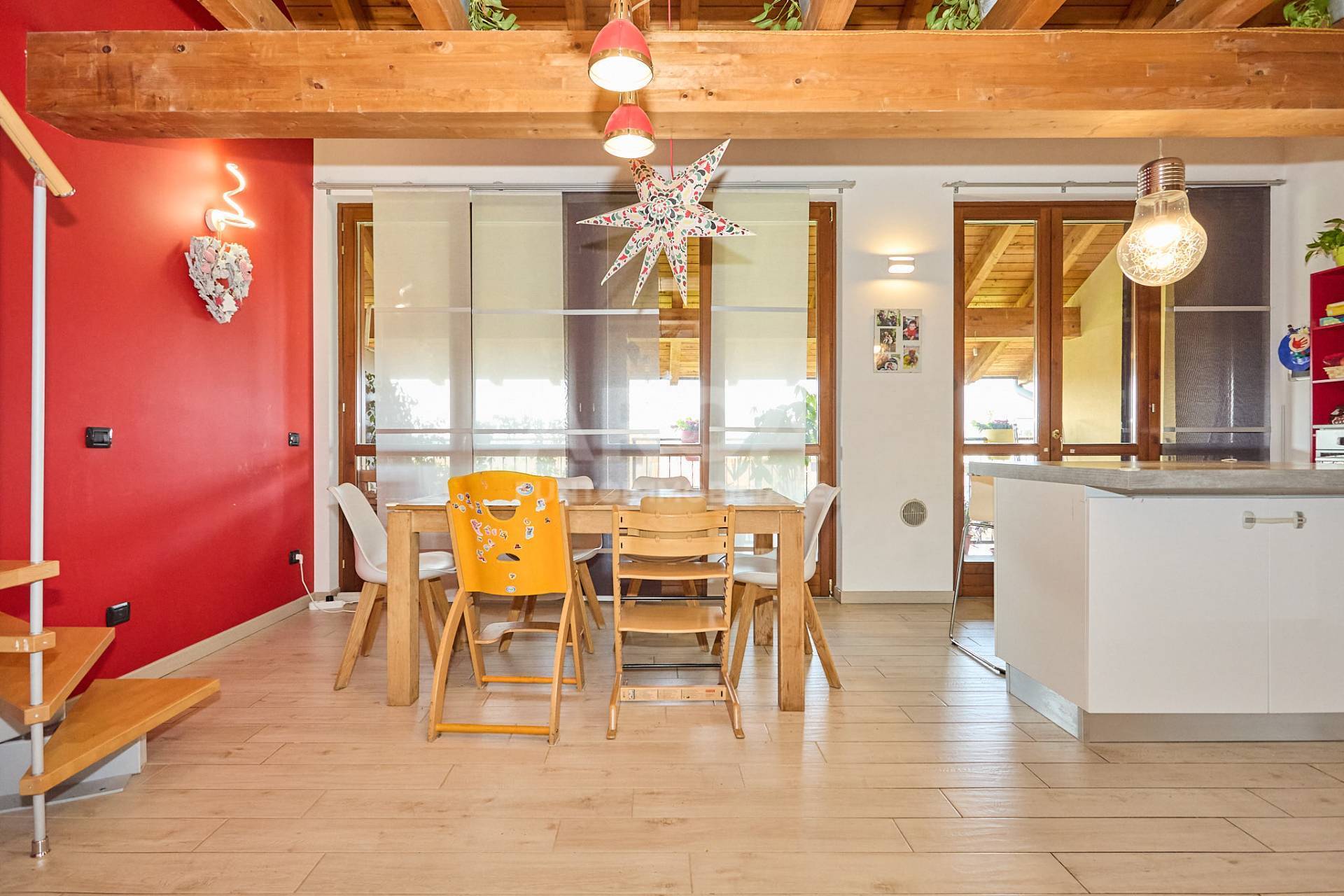 L'immobile cos meglio descritto: ingresso, ripostiglio-guardaroba, bagno, tramite uno spazioso disimpegno si accede alla luminosissima e confortevole zona giorno con cucina a vista, la zona living caratterizzata da una scenografica vetrata che permette l'uscita sul loggiato coperto, un terrazzo perfetto per pranzi e cene all'aperto in totale privacy, la zona notte composta da due ampie camere da letto e un bagno, la vista delle camere da letto meravigliosa su Montevecchia e la ***.*******.** Una comoda scala porta al piano superiore, che ospita un ampio loggiato, un bagno-lavanderia e un locale hobby relax soppalcato, il piano superiore contraddistinto da bellissime travi a vista, un elemento ricercato che valorizza la casa donando un'atmosfera molto accogliente e suggestiva.