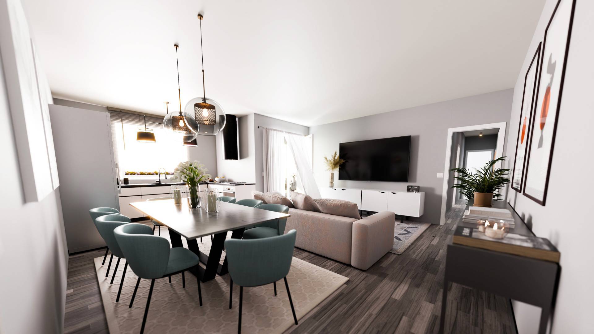 Materiali di alta qualit e dettagli curati caratterizzano ogni unit. Serramenti in PVC con tripla guarnizione assicurano isolamento termico e acustico, mentre oscuranti elettrici e zanzariere integrate garantiscono massima praticit.