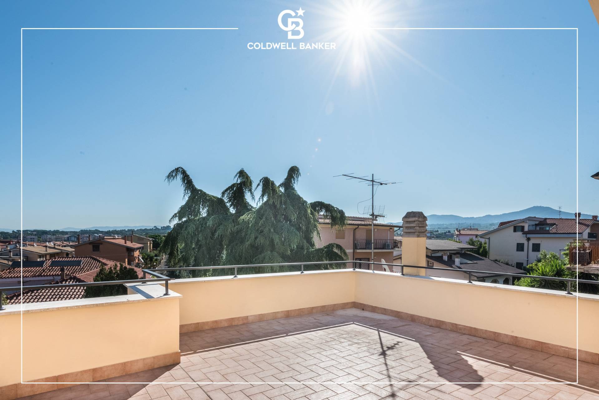 CIAMPINO nella parte pi richiesta del Comune, Via Mura dei Francesi e precisamente in Via Francesco Vella, una Via raccolta che accoglie pochi edifici di piccole dimensioni e ricca di verde; la Coldwell Banker Krea Case lieta di proporre in vendita un appartamento bilocale in villa ubicato al piano Attico con doppia esposizione ed uno splendido terrazzo di ampia metratura panoramico sui Castelli Romani.