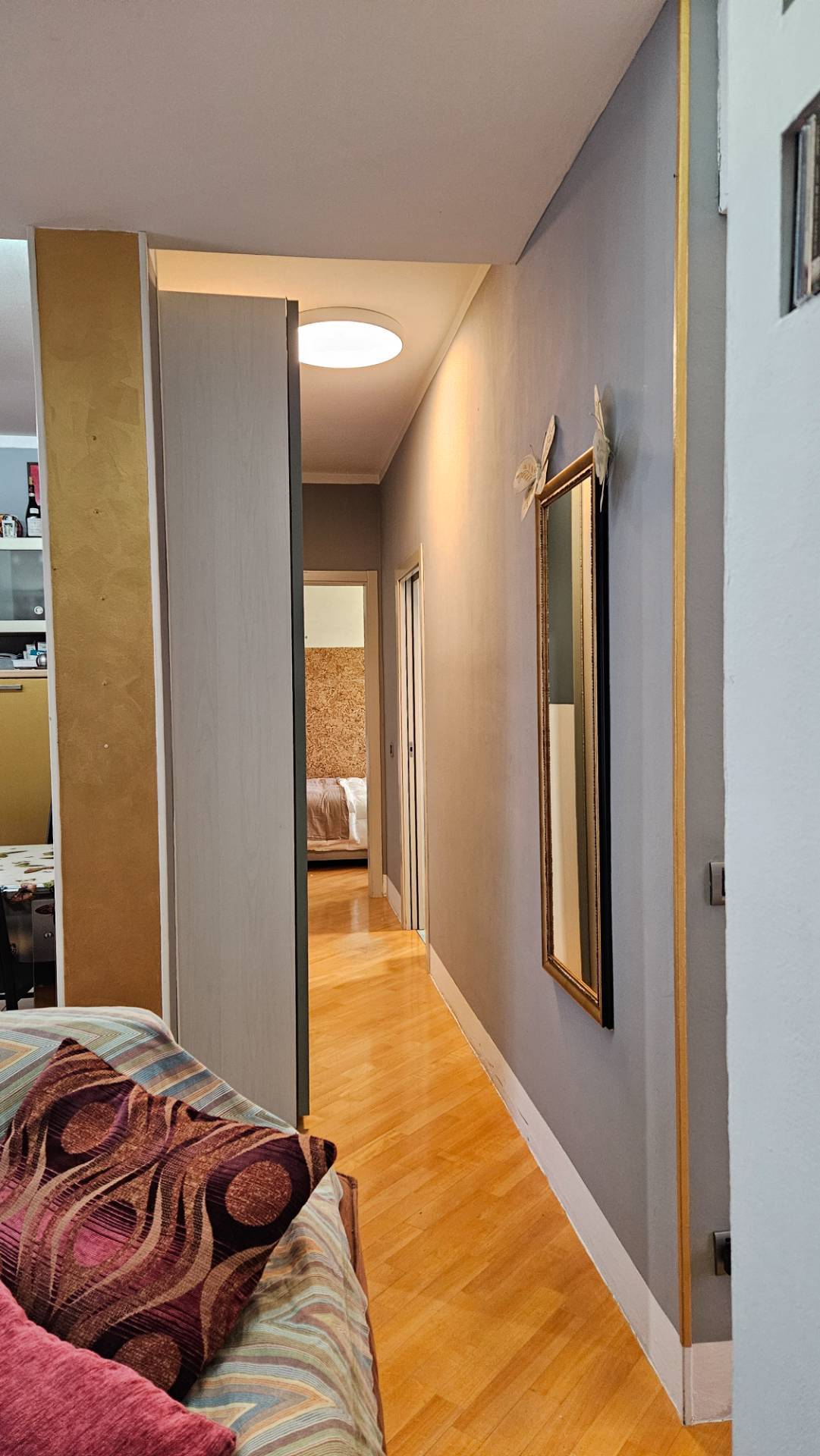 L'immobile cos composto: ampio ingresso con cucina a vista, lungo disimpegno con camera matrimoniale, dotata di cabina armadio, cameretta/studio, bagno finestrato con doccia; il vero valore aggiunto di questo immobile il grande terrazzo vivibile ottimo per romantici apertivi o cene in compagnia di amici e/o parenti, completa l'immobile un posto auto coperto.