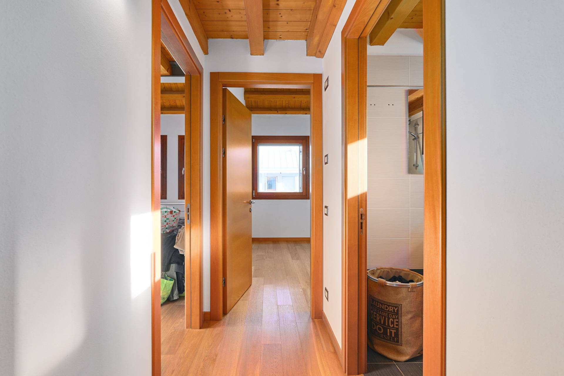 La zona notte ha due camere matrimoniali e un bagno con doccia.