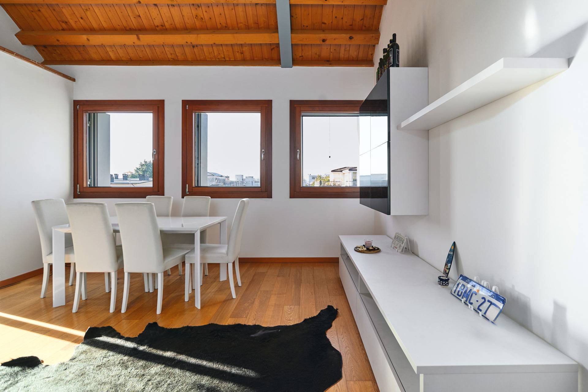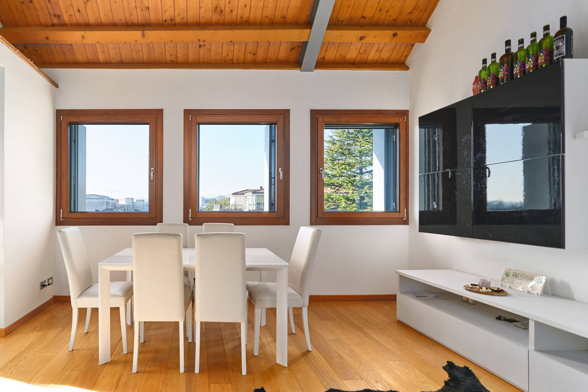 Attico in vendita a Sette Borghi, Conegliano, con due camere e soppalco COMPOSIZIONE Piano quinto: La zona giorno composta da unentrata che apre su un ampio soggiorno e sala da pranzo, una cucina e una loggia abitabile.