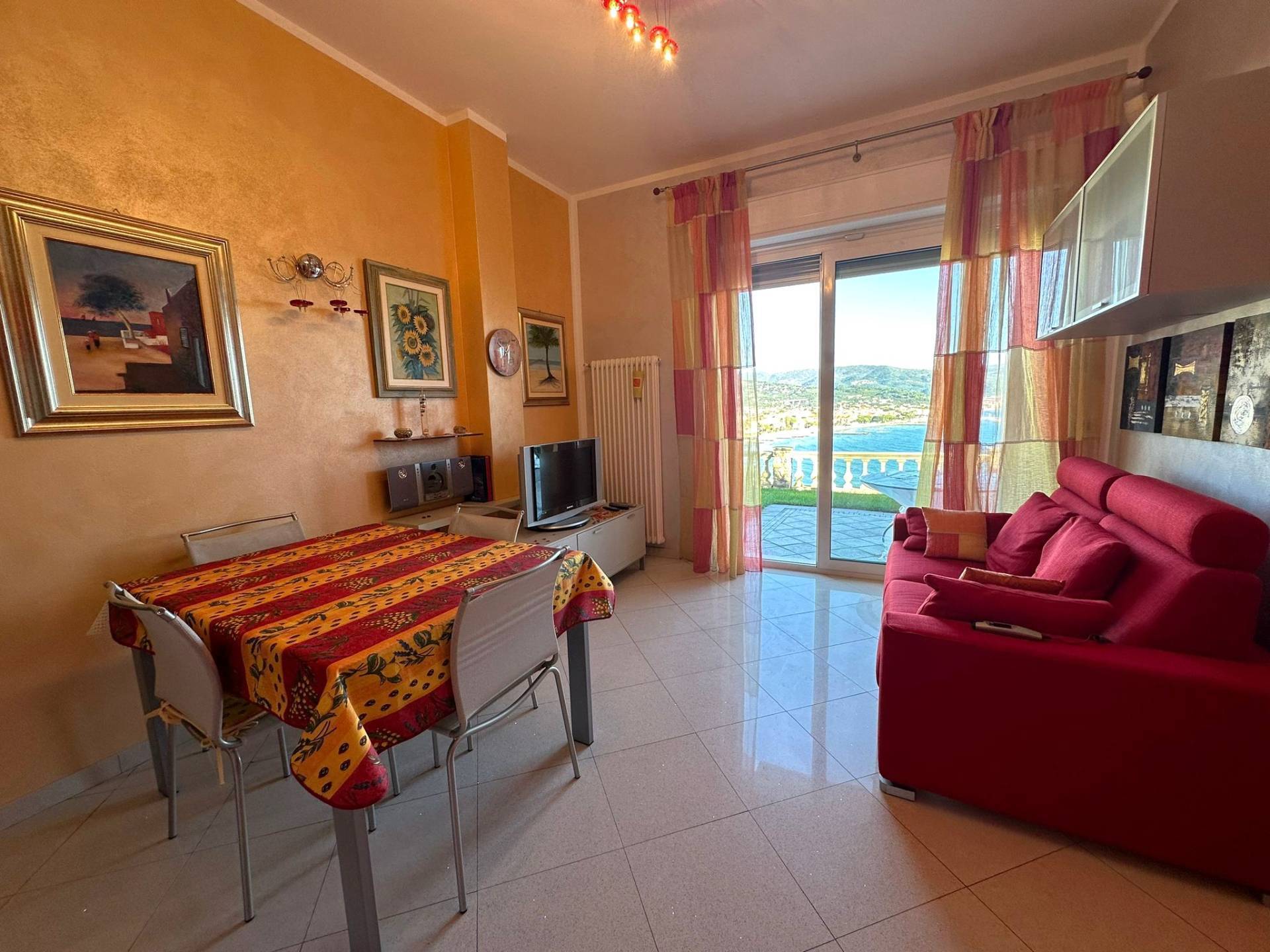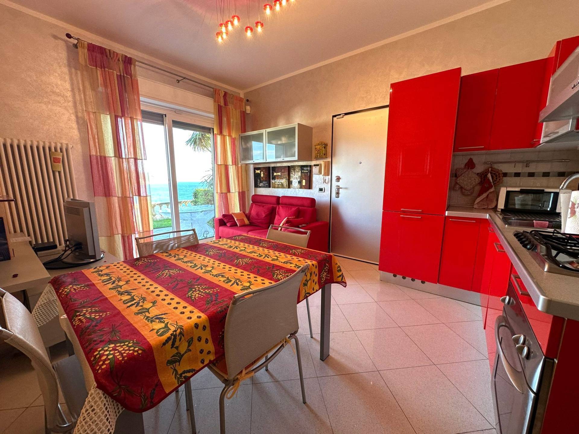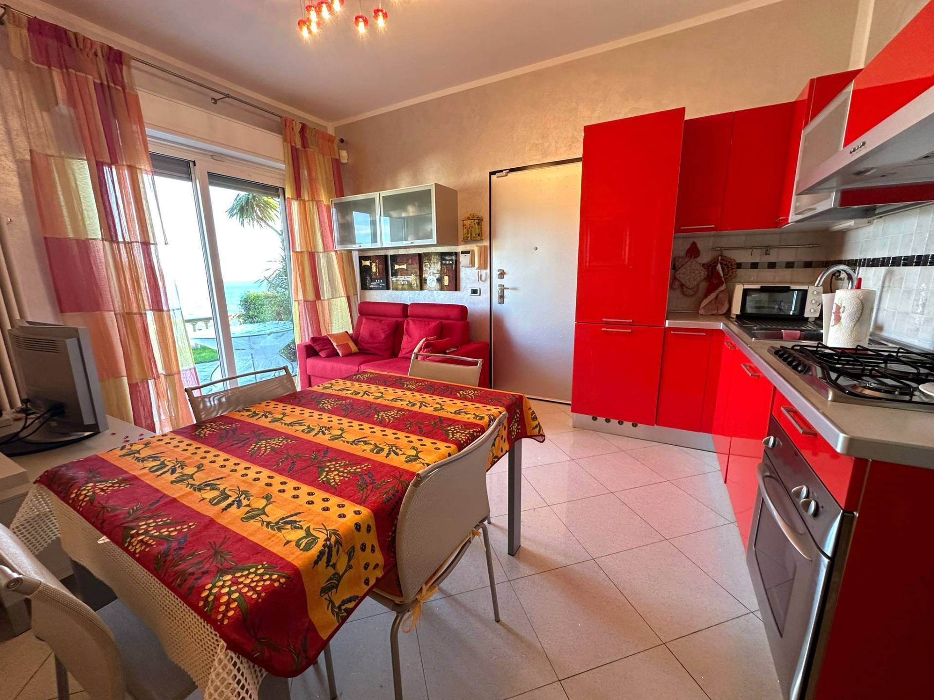 Situato al primo piano di una costruzione totalmente ristrutturata nell'anno 2010, questo prestigioso immobile offre una superficie interna molto luminosa con vista mare a 180^ ed composta da soggiorno con cucina, due camere da letto e due bagni.
