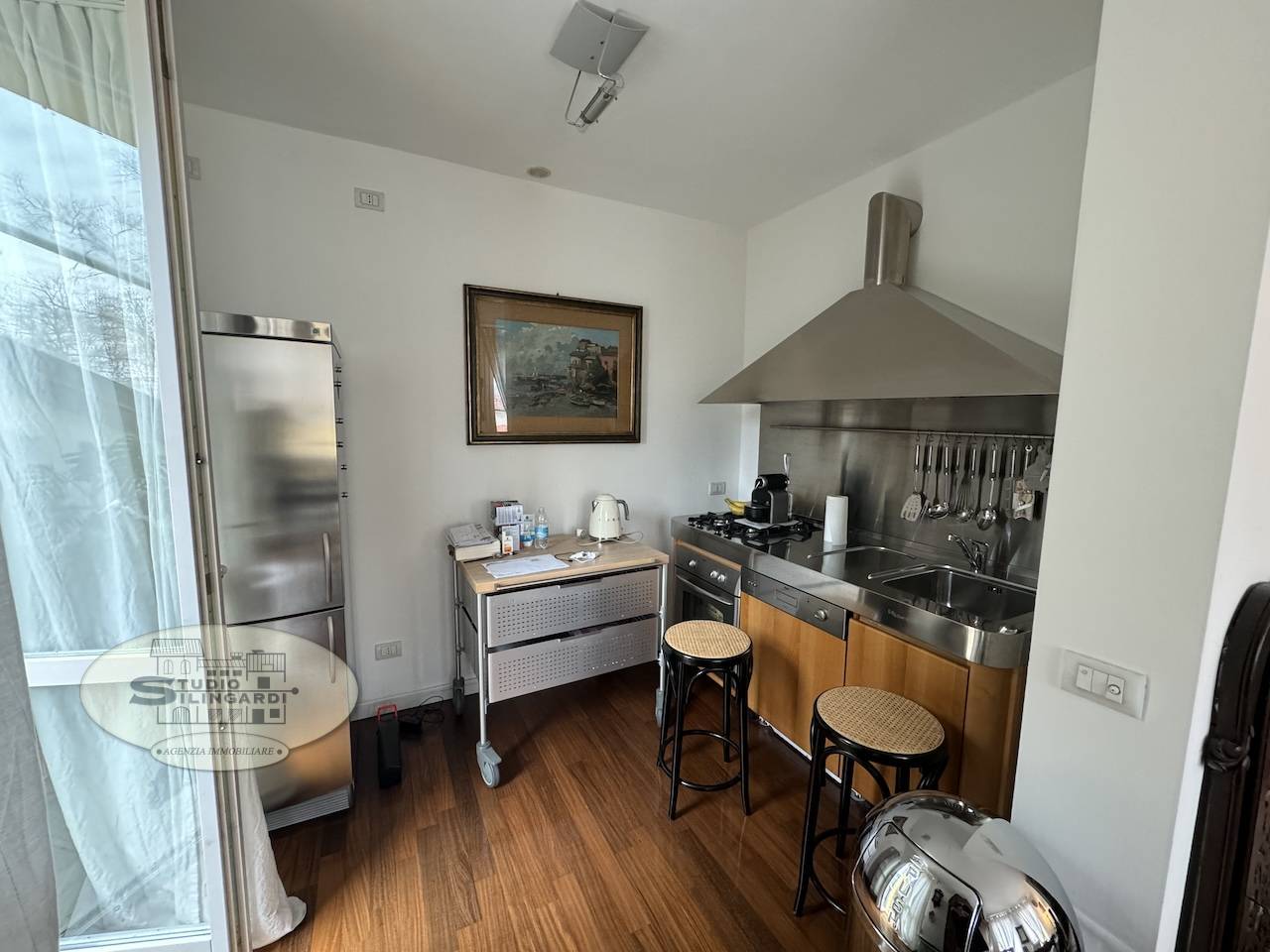 La soluzione si presenta in ottimo stato di conservazione; l'ingresso , al piano secondo con ascensore, si apre su un ampio e luminoso soggiorno con camino, caratterizzato da grandi vetrate che regalano una piacevole vista sui dintorni; l'angolo cucina affaccia su un gradevole terrazzo con ripostiglio; la zona notte, invece, si compone di due camere da letto matrimoniali (entrambe con accesso ad un balcone) , una cabina armadi e un bagno; un'elegante scala interna porta al piano superiore dove troviamo un ambiente soffitta open-space con locale lavanderia (accessibile anche dalla scala condominiale e quindi raggiungibile anche con ascensore). Completa la propriet un comodo garage con basculante motorizzato.