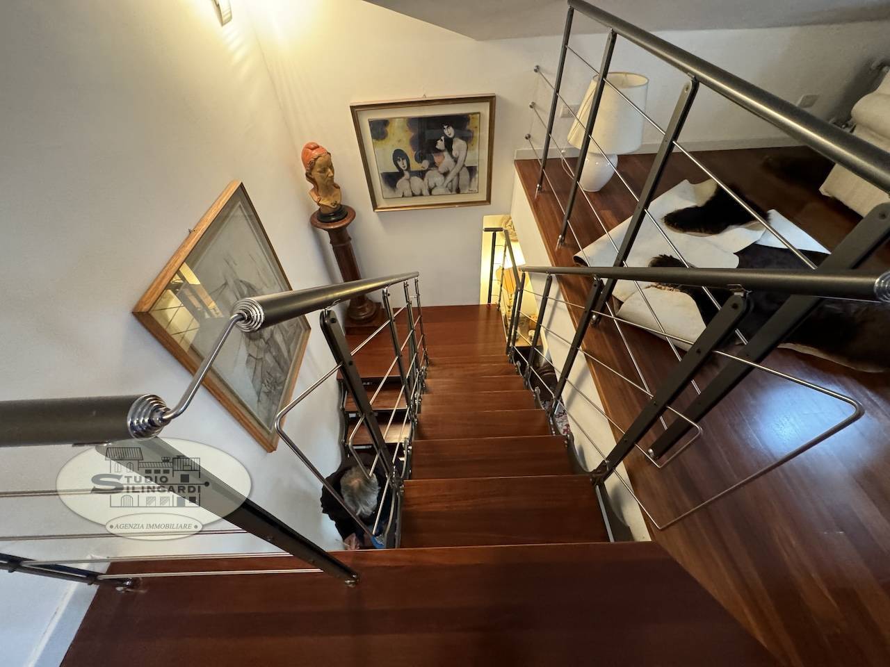 La soluzione si presenta in ottimo stato di conservazione; l'ingresso , al piano secondo con ascensore, si apre su un ampio e luminoso soggiorno con camino, caratterizzato da grandi vetrate che regalano una piacevole vista sui dintorni; l'angolo cucina affaccia su un gradevole terrazzo con ripostiglio; la zona notte, invece, si compone di due camere da letto matrimoniali (entrambe con accesso ad un balcone) , una cabina armadi e un bagno; un'elegante scala interna porta al piano superiore dove troviamo un ambiente soffitta open-space con locale lavanderia (accessibile anche dalla scala condominiale e quindi raggiungibile anche con ascensore). Completa la propriet un comodo garage con basculante motorizzato.