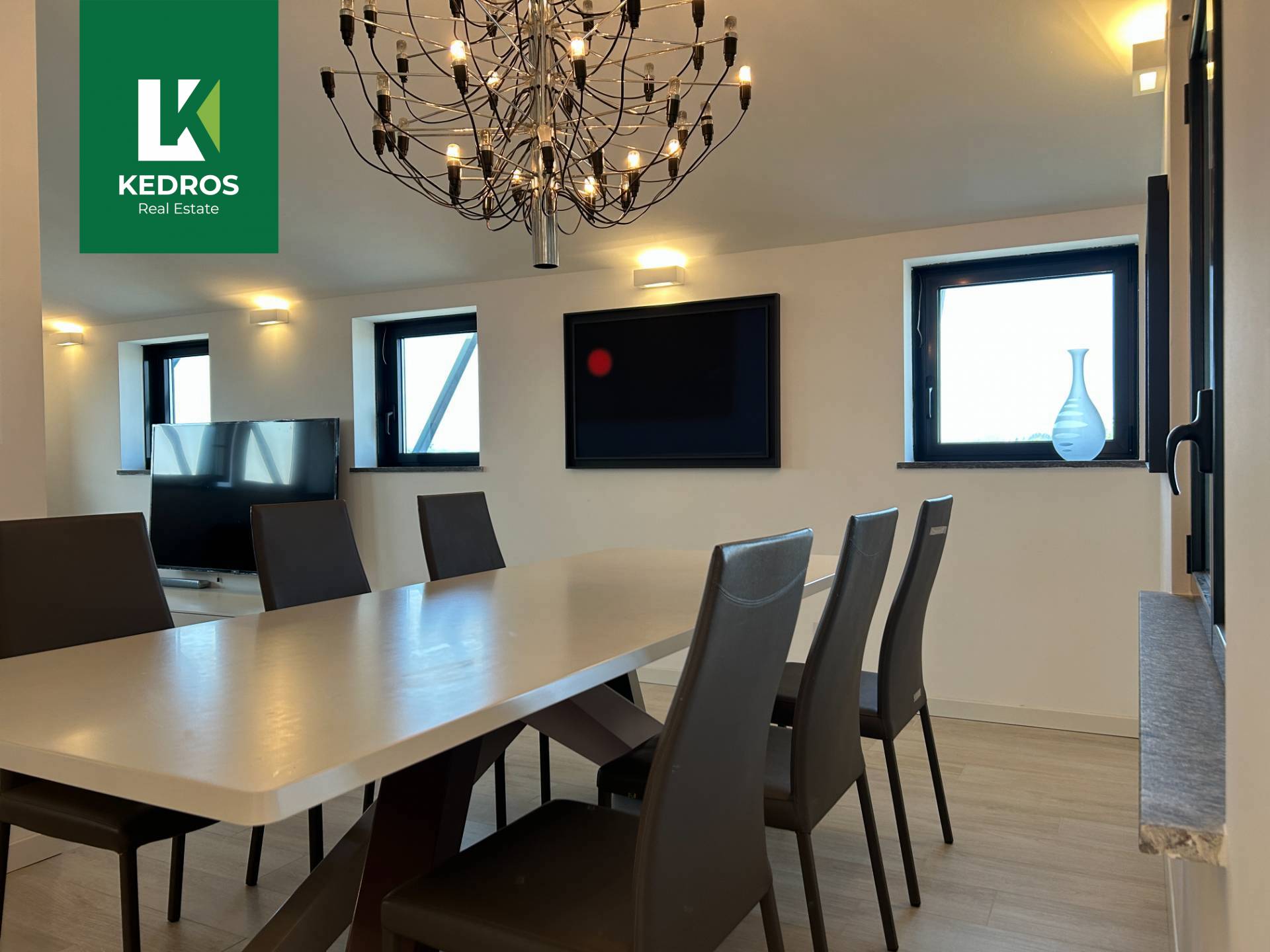 L'ingresso si apre su un'area living di raro respiro, dove il design moderno si fonde con finiture di altissimo pregio e arredi selezionati per esaltare l'ampiezza e la luminosit naturale che solo un ultimo piano pu offrire.
