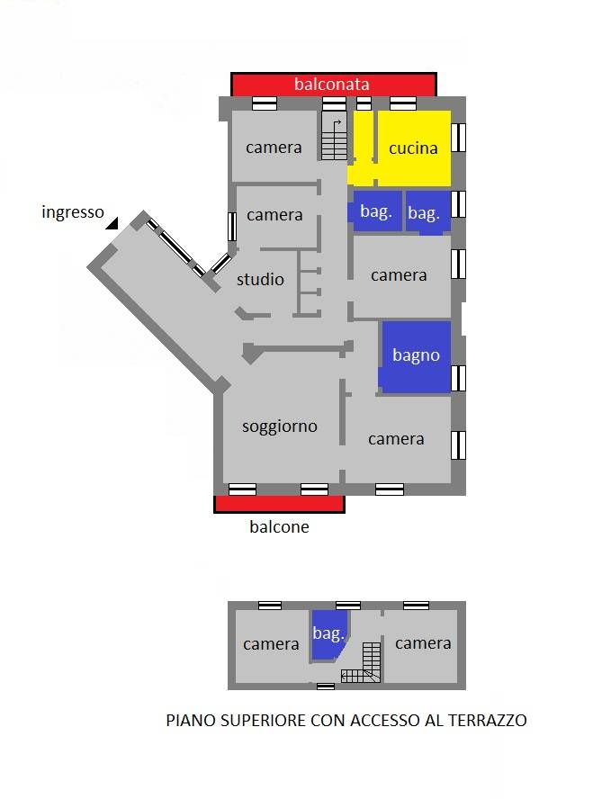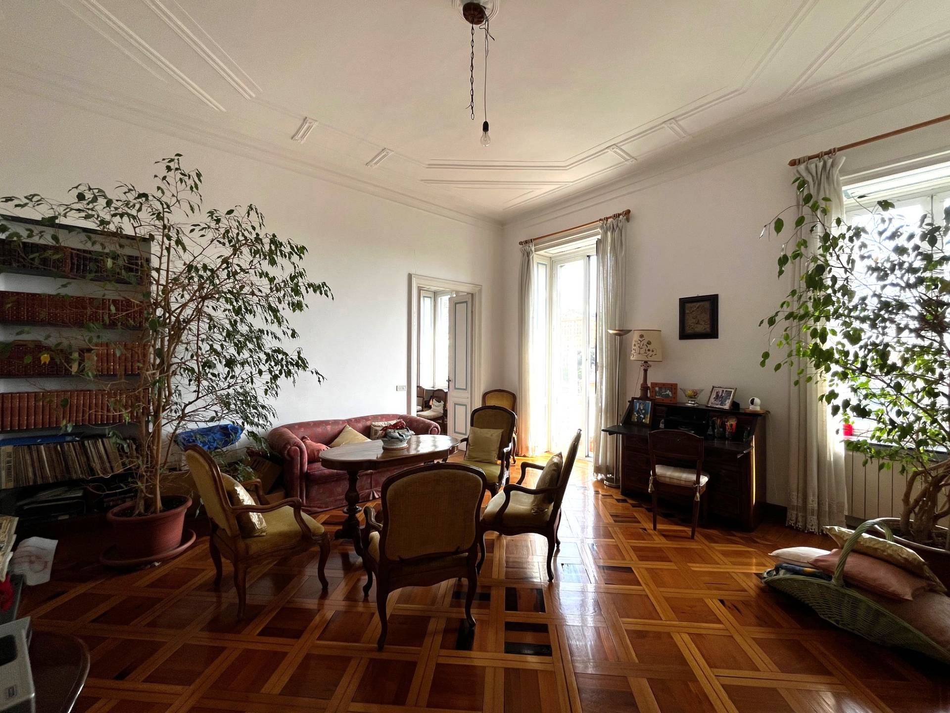 Genova Castelletto ATTICO in vendita! Siamo in Corso Firenze, nel residenziale quartiere di Castelletto, all'interno del prestigioso Palazzo Piaggio, proponiamo splendido attico bi-livello con grandissimo terrazzo con vista mare-citt. L'immobile molto ordinato ed ha conservato i particolari d'epoca quali i soffitti e la pavimentazione originale, attualmente la disposizione interna composta da ampio salone di ingresso, il soggiorno, quattro camere, lo studio, la cucina, tre bagni ed altrettanti ripostigli, balcone sul corso e balconata, al piano superiore troviamo altre due camere e il bagno, da questo piano si accede direttamente al terrazzo, data la generosa metratura si presta anche ad un eventuale frazionamento.