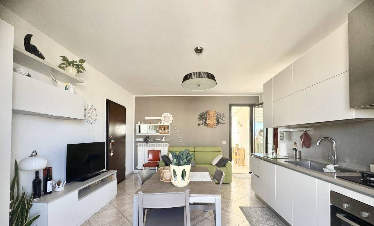 Una zona living ariosa, con cucina a vista, dove la luce entra da ogni angolo e ti accompagna verso lesterno.