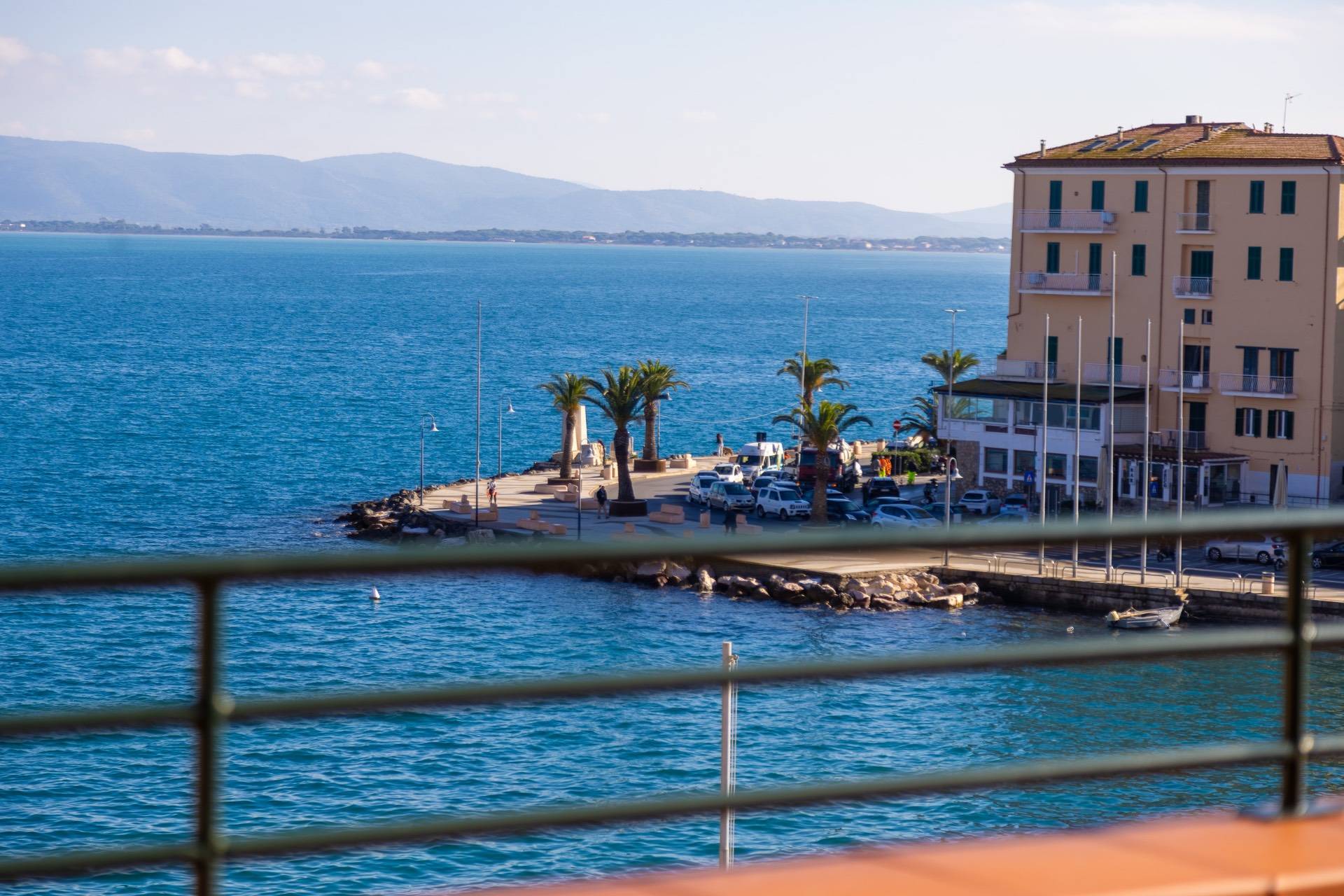 Porto Santo Stefano Direttamente sul mare, affacciato sulla Piazza pi bella del paese, questo attico vanta una grandissima terrazza con stratosferica vista mare. L'appartamento vanta ambienti spaziosi e luminosi, tipici delle costruzioni signorili degli anni '70. Gli ambienti ampi e luminosi sono inondati di luce naturale durante lintera giornata, grazie alla posizione privilegiata e alle grandi aperture verso il mare. Un ingresso accogliente introduce alla zona giorno, composta da un raffinato salotto, un piccolo living, una cucina funzionale e un bagno di servizio.