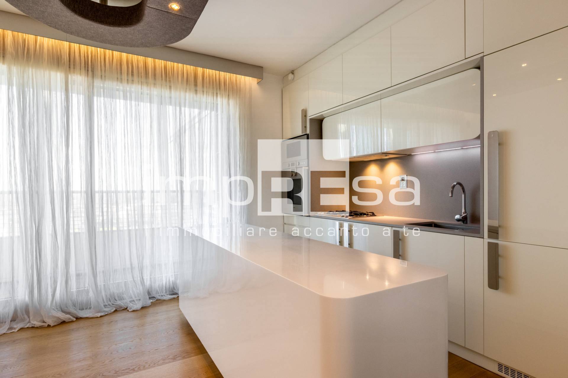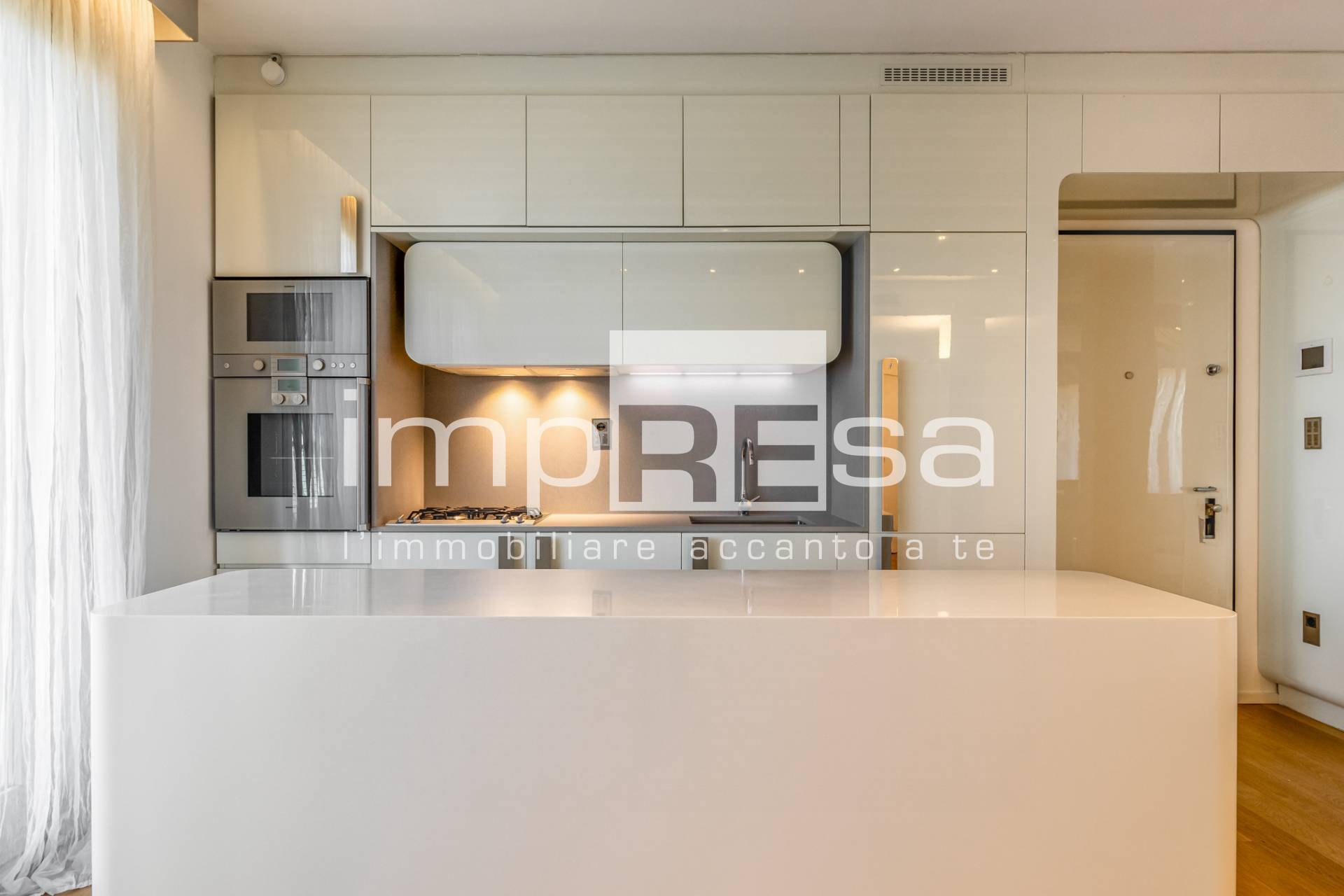 Zona giorno molto luminosa durante tutta la giornata con due logge opposte che servono sia la cucina che il soggiorno.