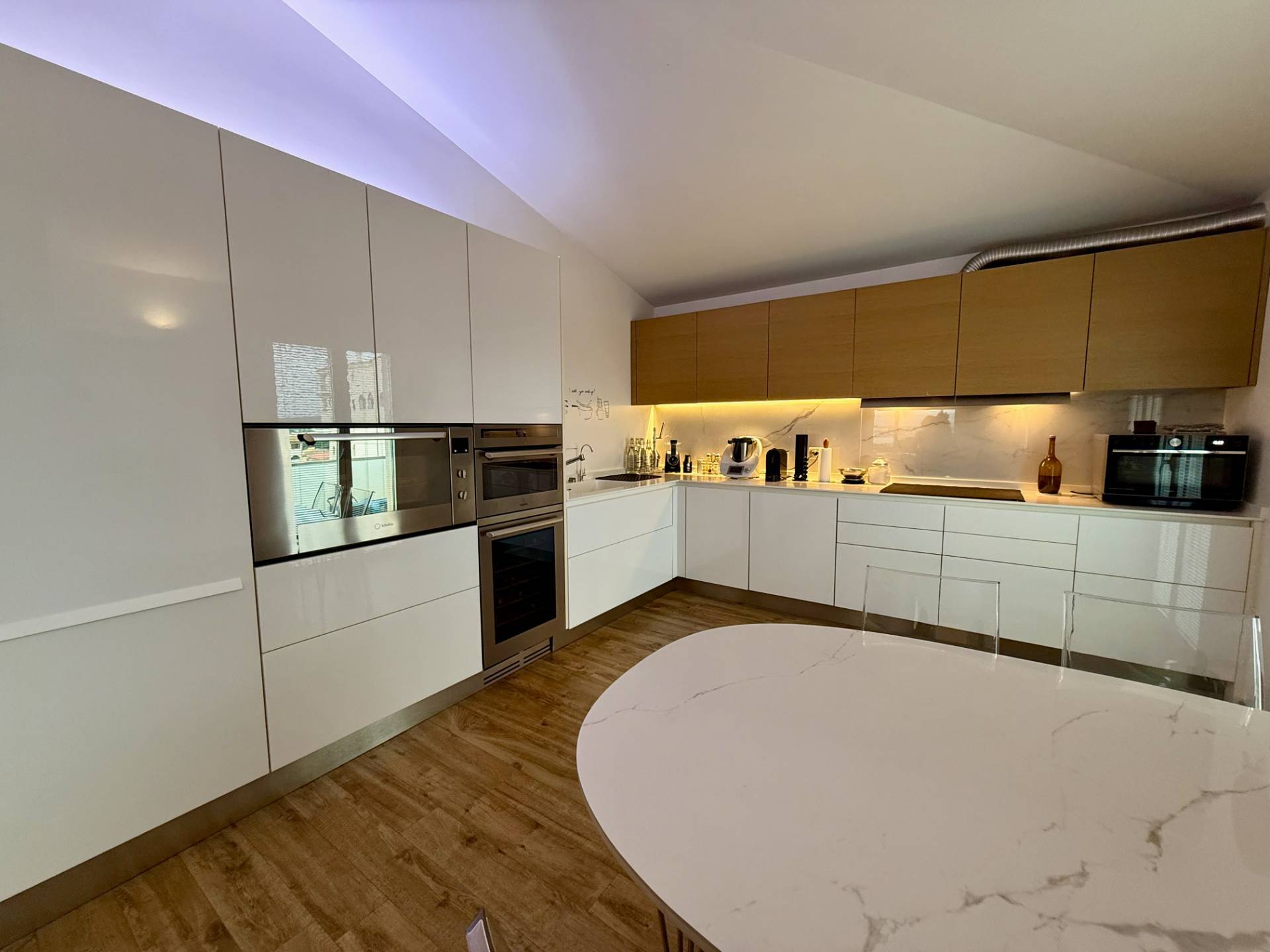 Cucina a vista, con accesso diretto al terrazzo, perfetta per godere della vista sul panorama circostante.