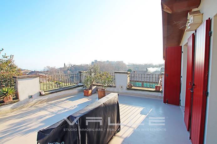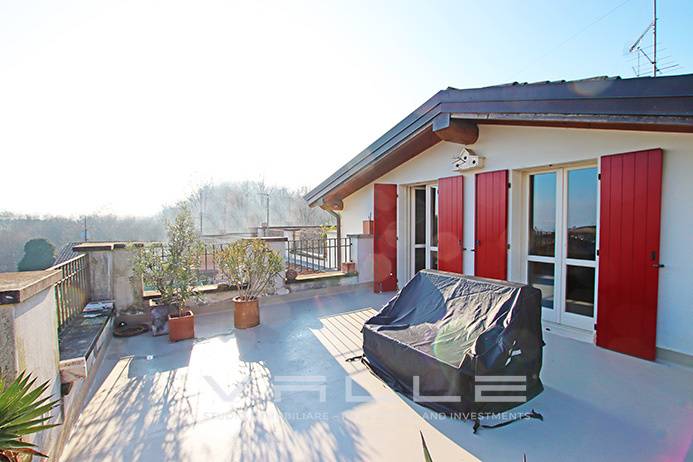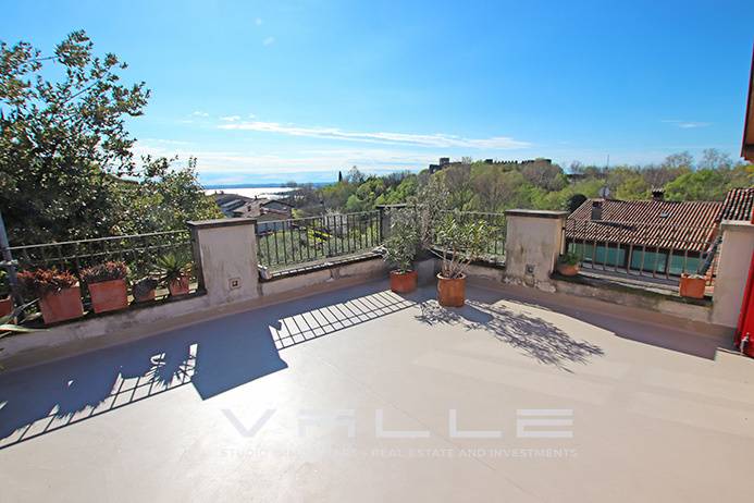 - PADENGHE SUL GARDA _ MONTE Pregevole attico trilocale di mq 105 dotato di 80 mq di terrazze panoramiche vista lago, grande cantina, autorimessa e posto auto privato.