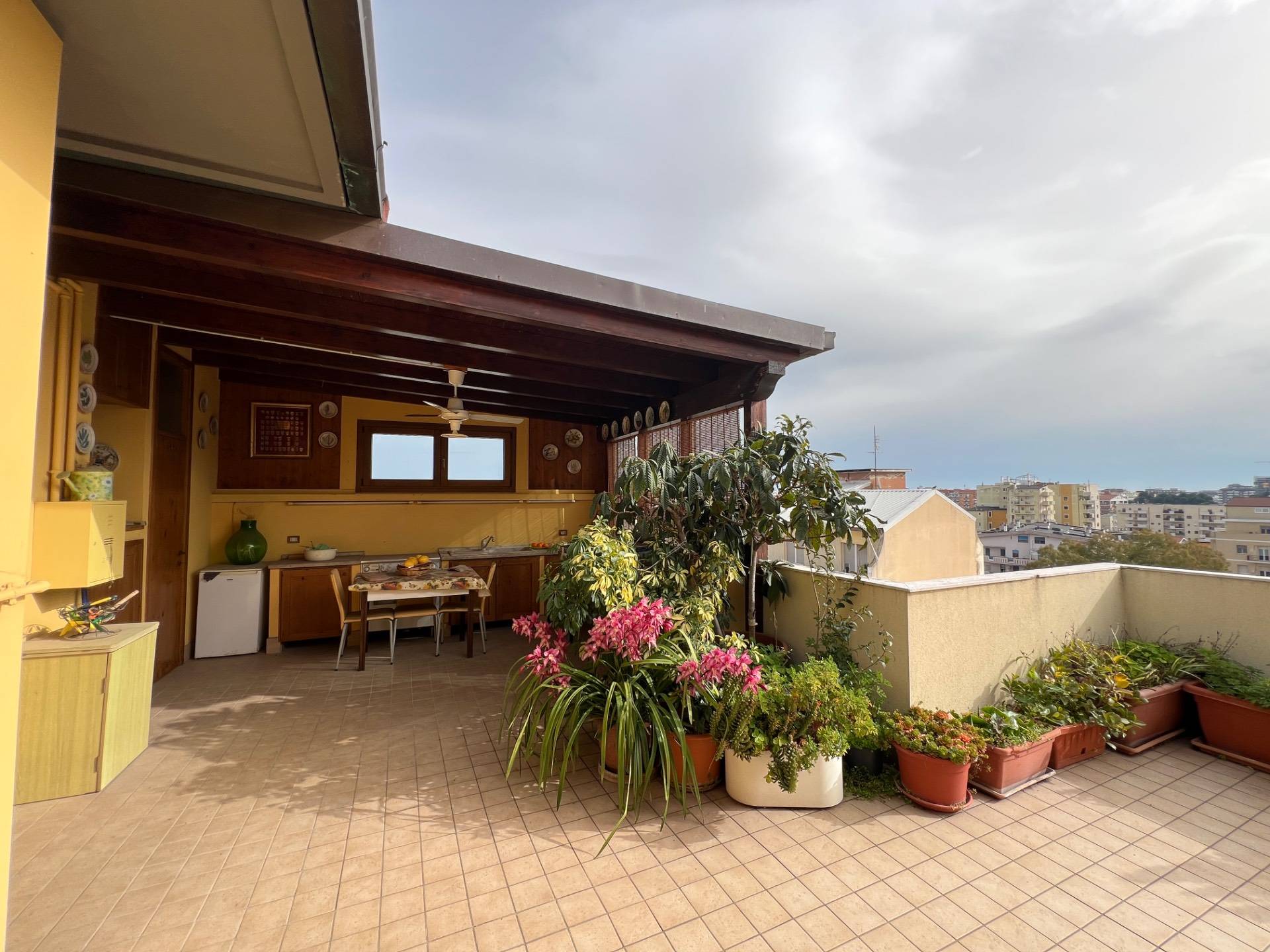 Una parte dello spazio esterno stata attrezzata con un pergolato in legno e una cucina all'aperto, trasformandolo in un vero living supplementare, completato da comodi ripostigli e tende da sole. '?Una residenza concreta, solida e pronta da abitare, ideale per chi cerca una gestione degli spazi intelligente e un affaccio panoramico davvero meraviglioso sulla citt. L'appartamento fornito di filodiffusione e climatizzazione in tutte le stanze.