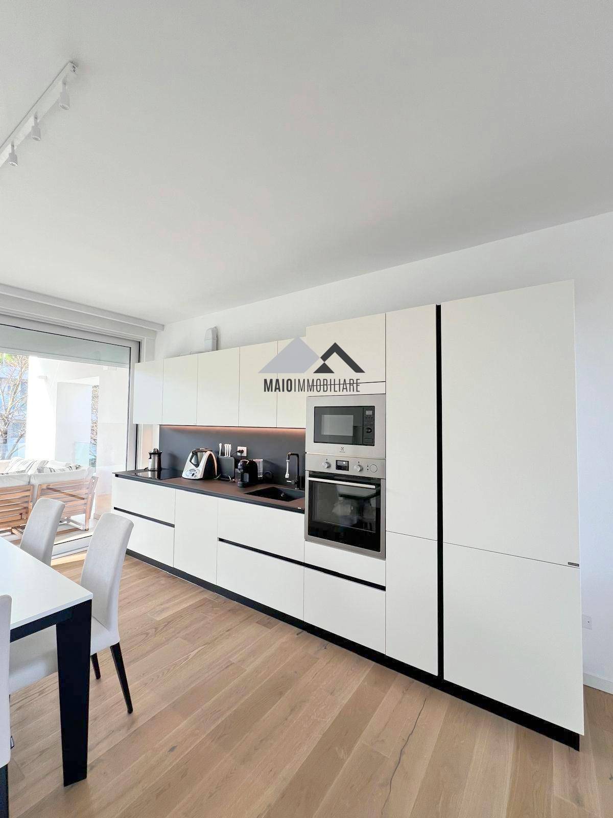 Una volta all'interno, si viene accolti da una spaziosa e luminosa zona living con cucina a vista, caratterizzata da ampie vetrate che permettono di godere della vista panoramica, proseguendo troviamo la zona notte composta da due camere da letto di cui una con bagno en suite, secondo bagno dal gusto moderno e ricercato.