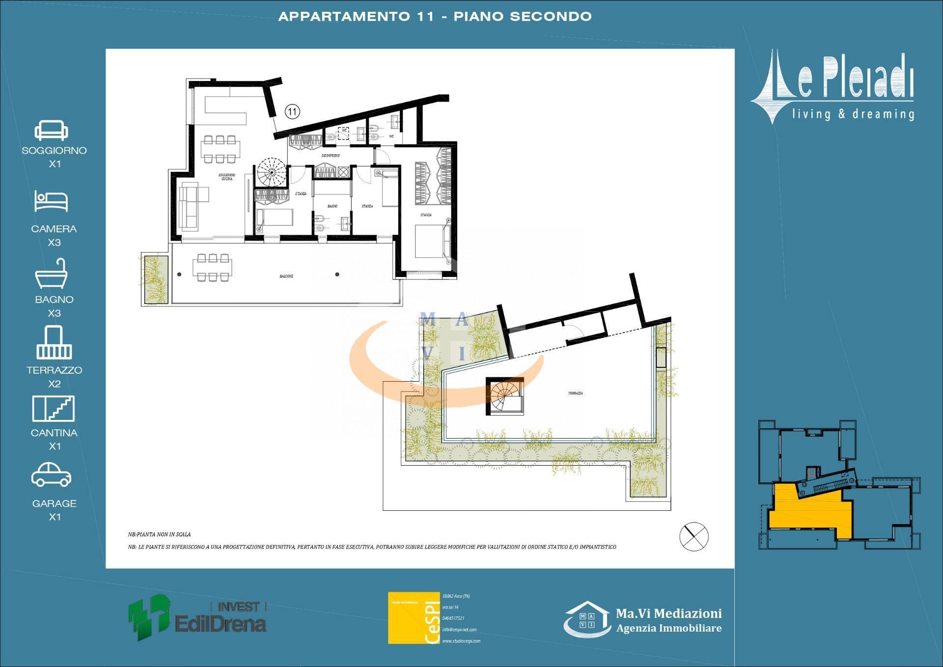 Il comfort garantito in ogni stagione, grazie a impianti ad alta efficienza e materiali selezionati con cura. CONSEGNA PRIMAVERA 2027 ATTICO (Rif.11): Ingresso, ampio soggiorno/cucina con accesso diretto al solarium al piano superiore, disimpegno, due camere singole con bagno finestrato, camera matrimoniale con bagno privato.