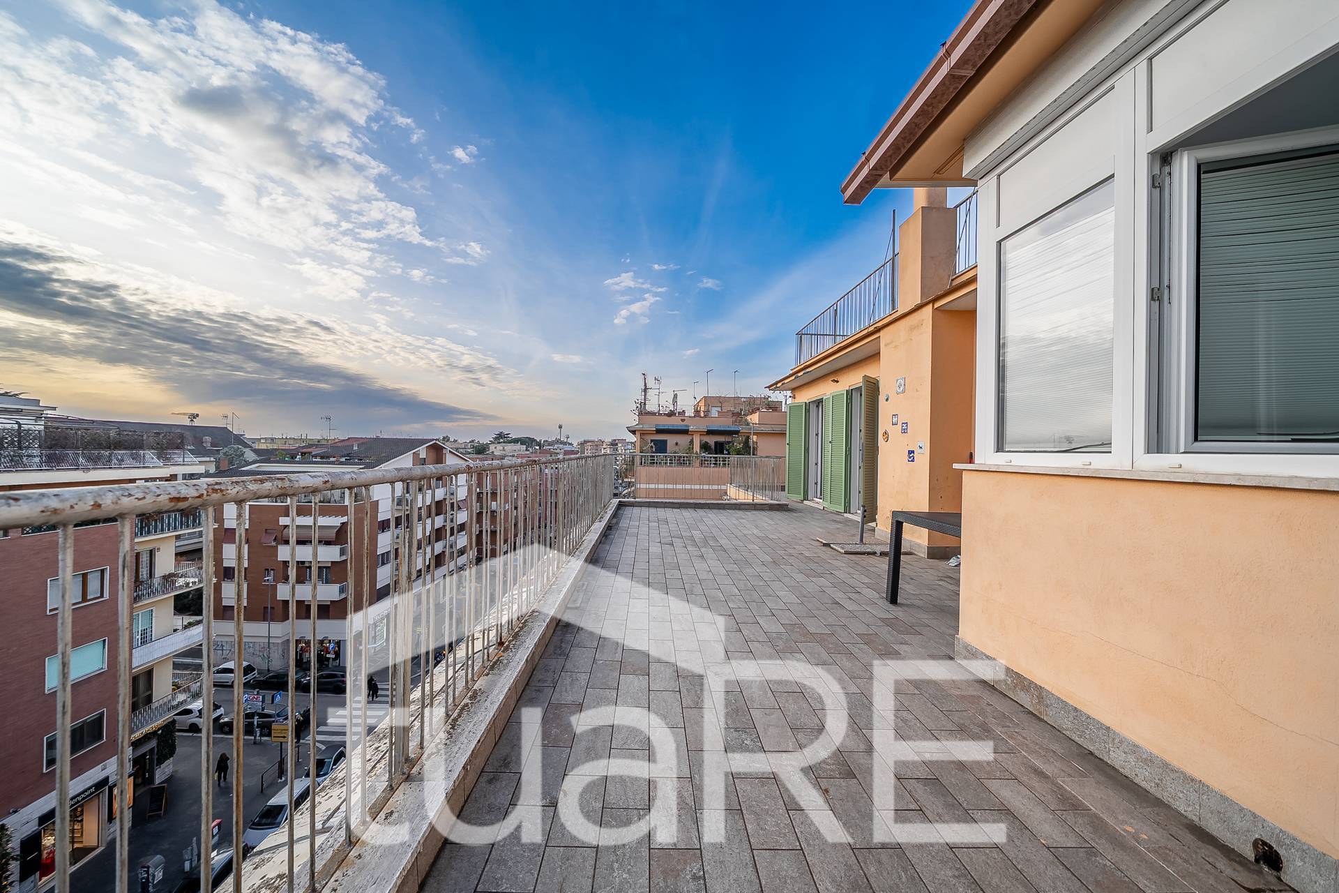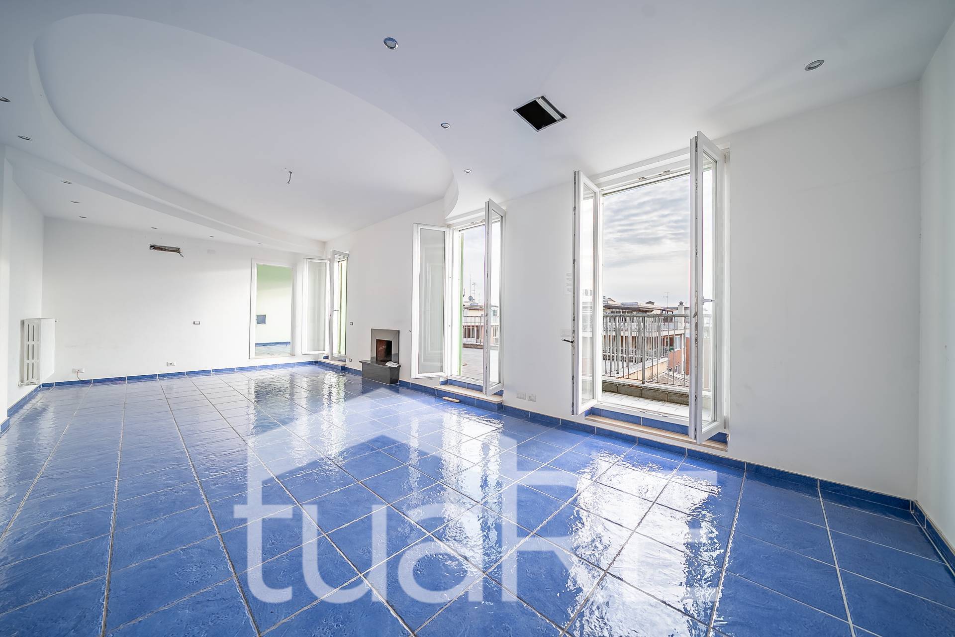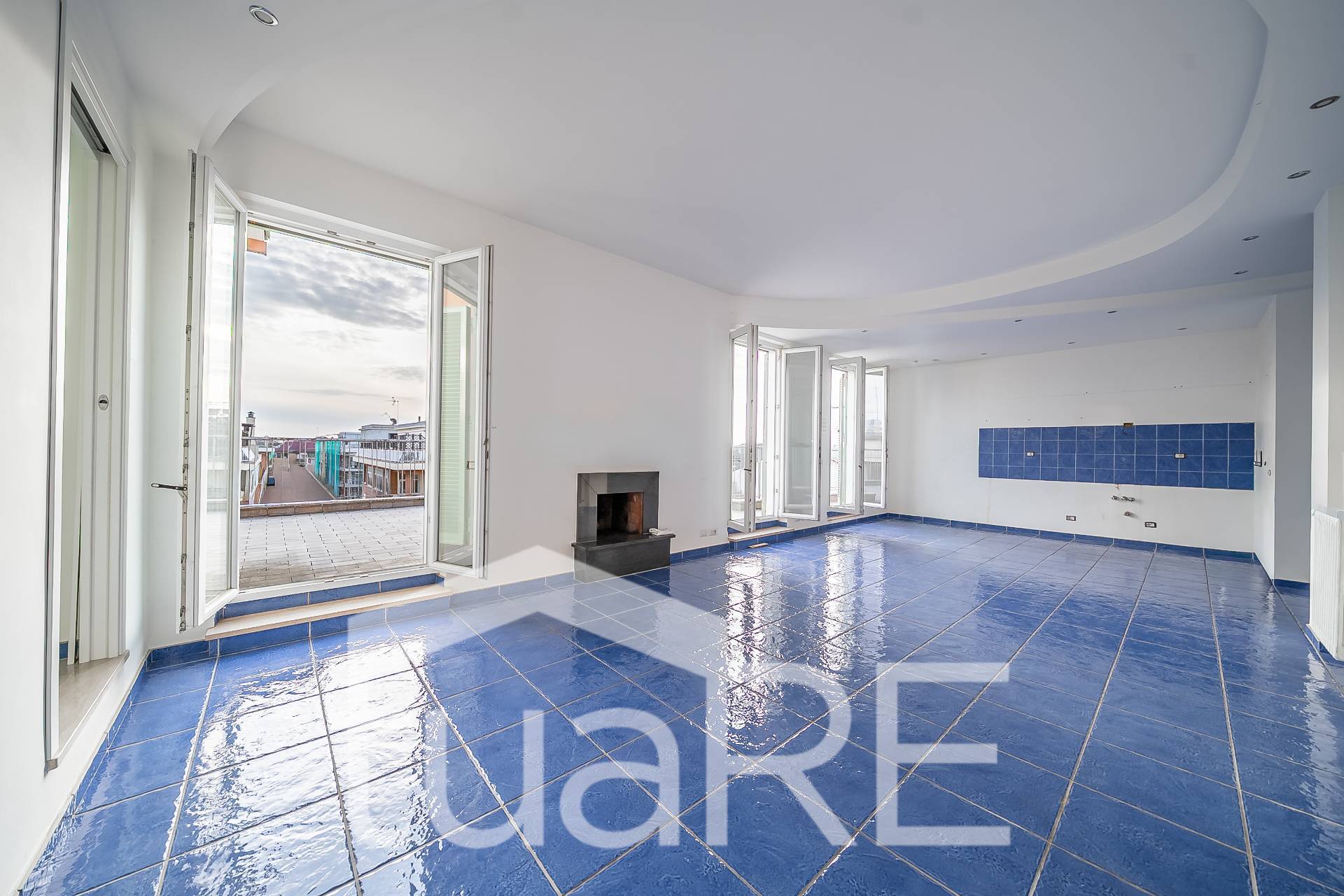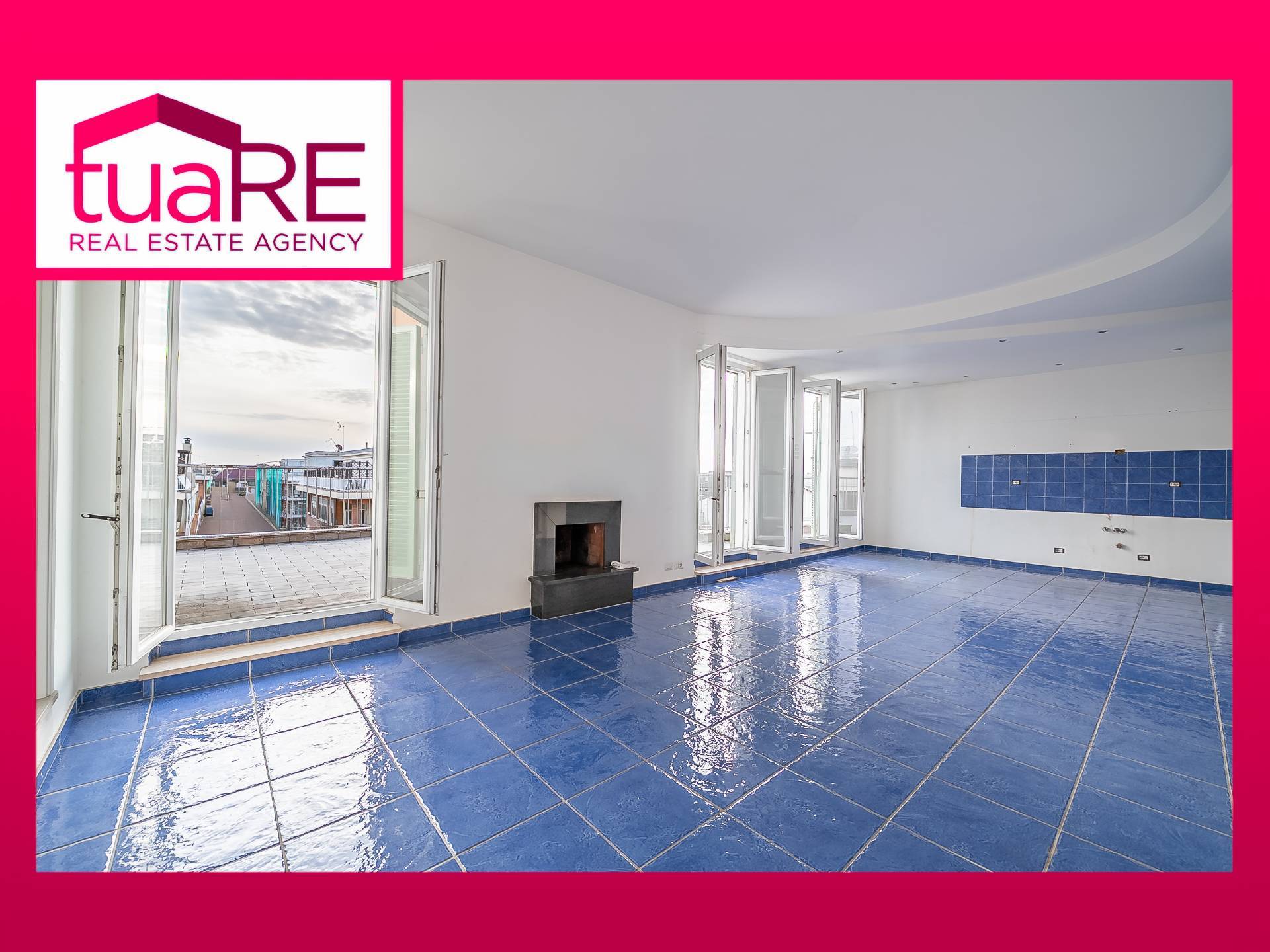 Al 5° piano troviamo un ampio salone triplo con camino e cucina all'americana, 3 ampie camere matrimoniali, 2 servizi ed un ampio terrazzo di circa 100 mq; salendo al superattico posto al 6° piano, tramite una comoda scala troviamo la 4° camera ed un meraviglioso terrazzo di circa 200 mq. Tutte le informazioni, misure e planimetrie riportate nel presente annuncio sono meramente indicative e non costituiscono in alcun modo elementi contrattuali.