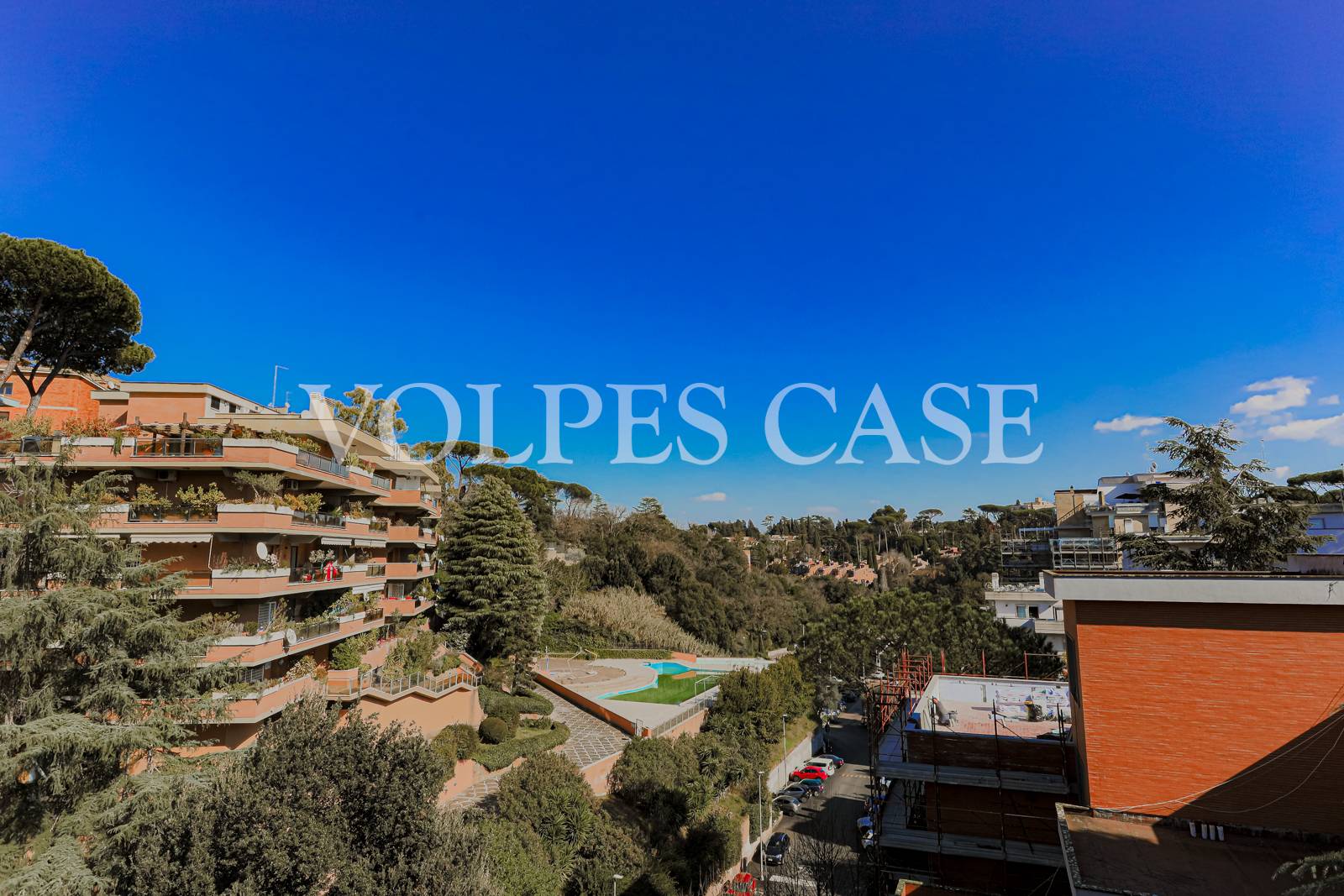 In una posizione privilegiata allinterno del consorzio di Viale Cortina dAmpezzo dotato di 30 telecamere e pattugliamento notturno, proponiamo in vendita un elegante attico panoramico unico al piano che unisce comfort, ampi spazi esterni e una vista aperta, ideale per chi desidera un'abitazione luminosa e raffinata.