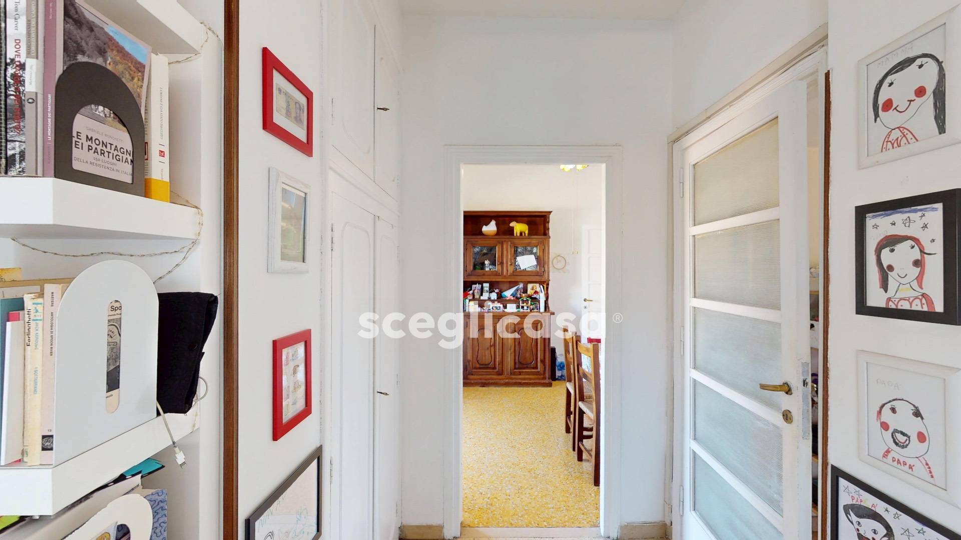 Da un lato si accede alla camera da letto, luminosa e con uscita sulla terrazza; dallaltro un disimpegno con armadio a muro e ampio bagno finestrato con vasca.
