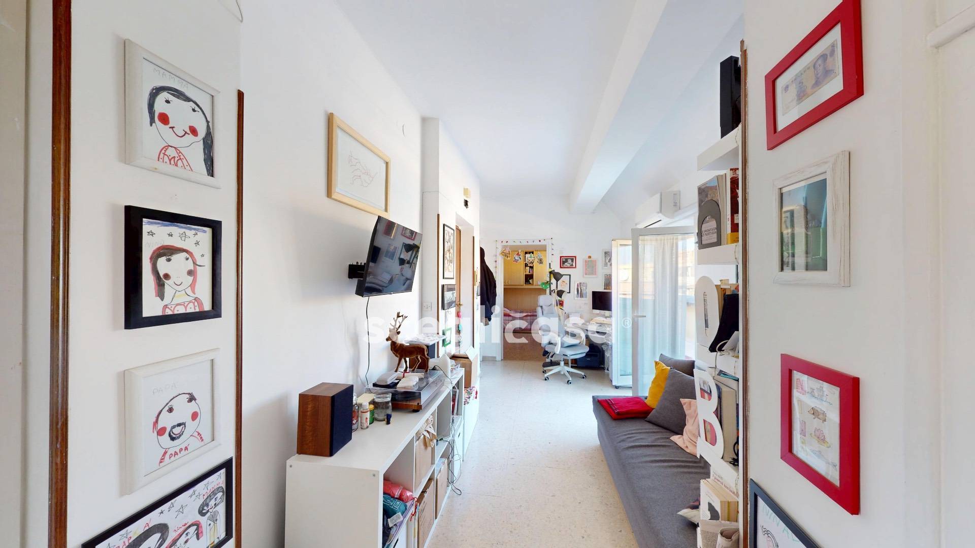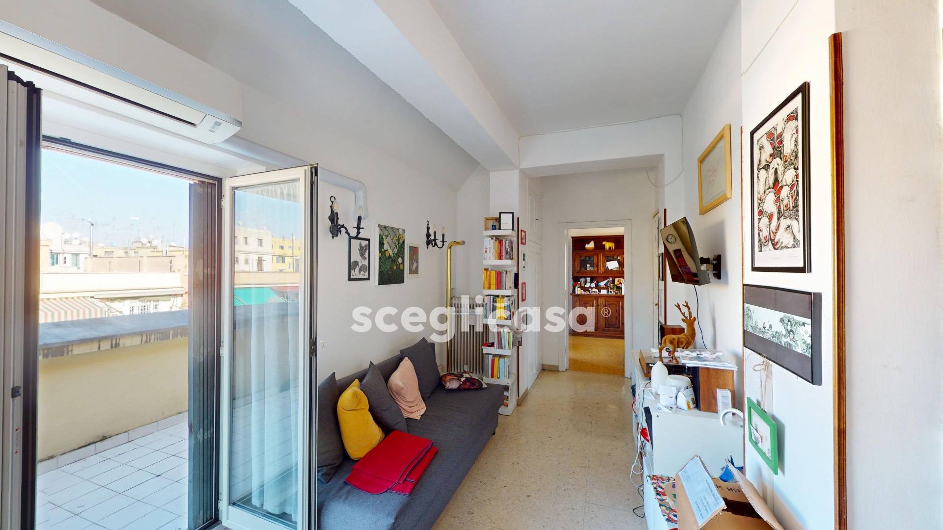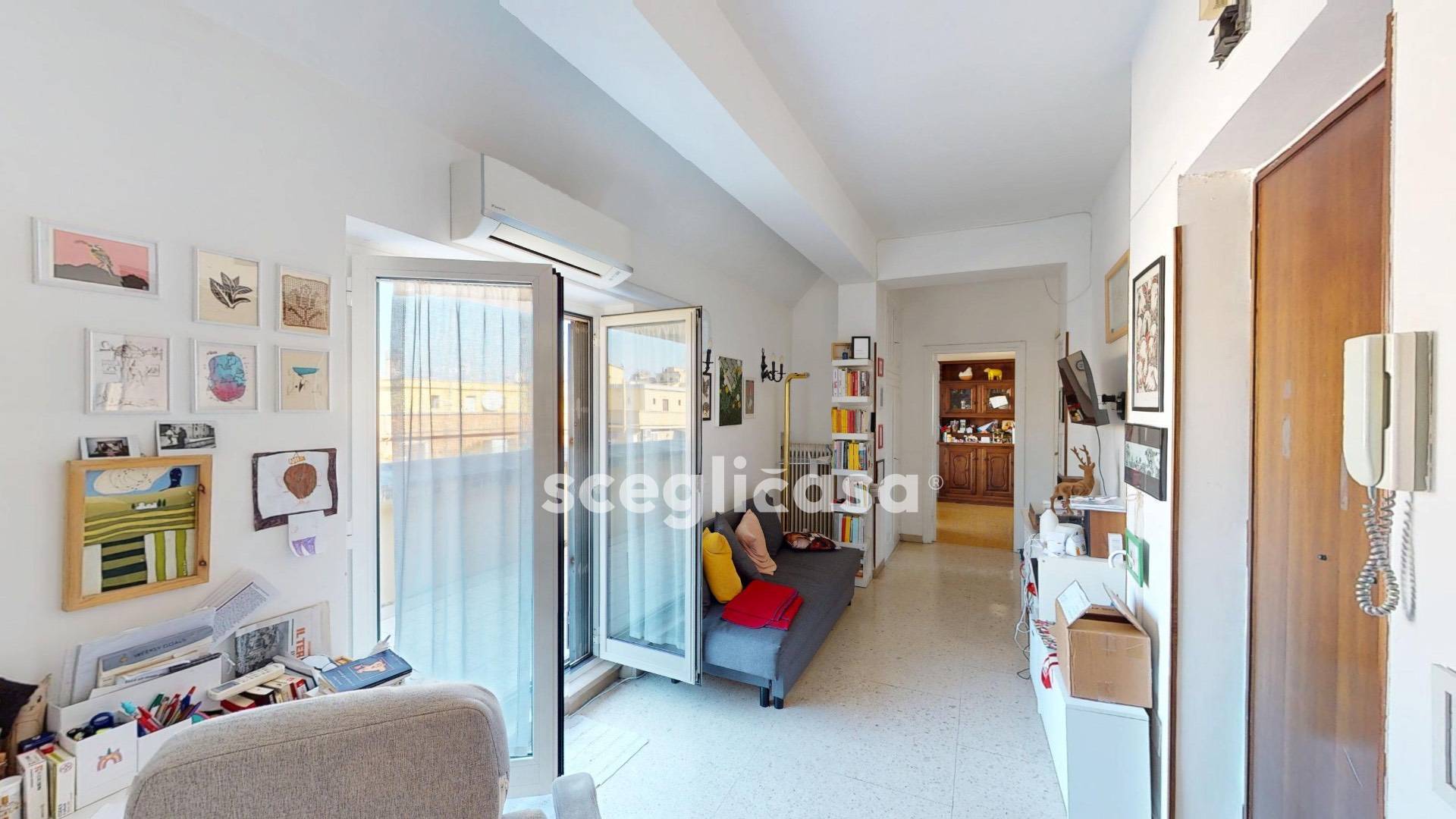 E' composto da 3 ambienti, servizi, armadi a muro, balcone e terrazza perimetrale di circa 30 mq, La casa ha tripla esposizione ed attraversata dalla luce grazie a ampie vetrate sulla terrazza, offrendo visuali sui tetti circostanti, con una piacevole sensazione di respiro.