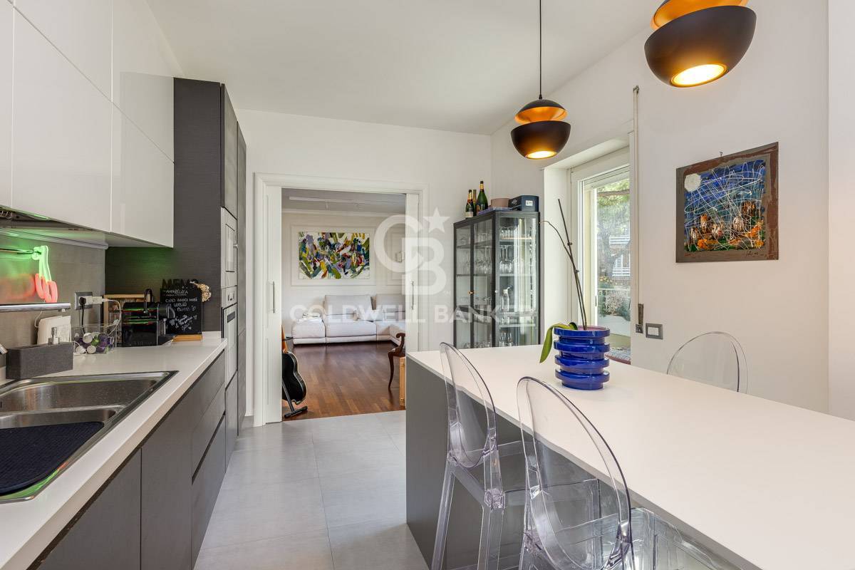L'immobile stato ristrutturato recentemente, presenta finiture di pregio, pavimentazione in parquet in tutta casa, infissi doppio vetro taglio termico, serrande elettriche, aria condizionata in ogni ambiente anche in cucina, tende da sole elettriche nel terrazzo, riscaldamento autonomo.