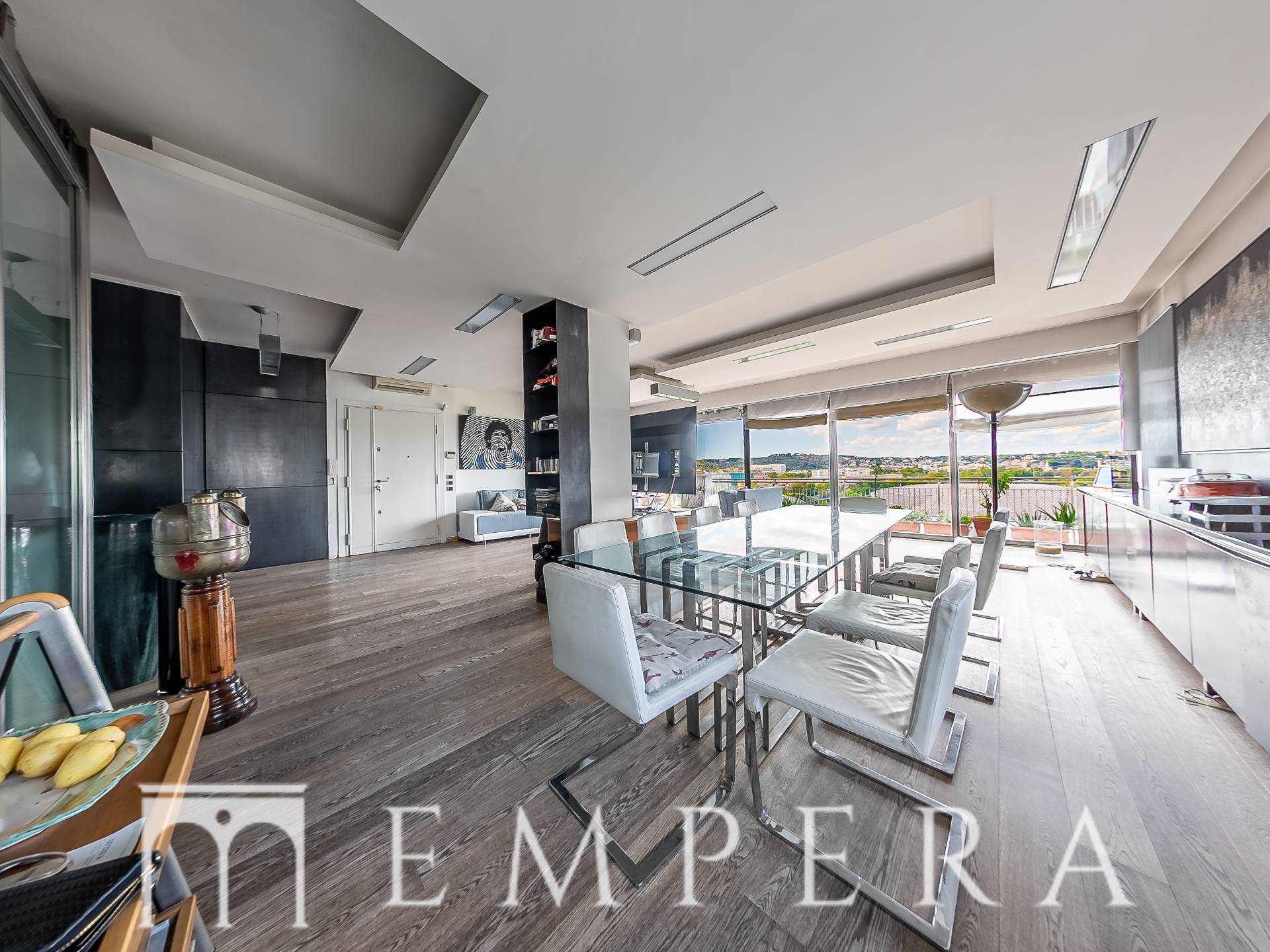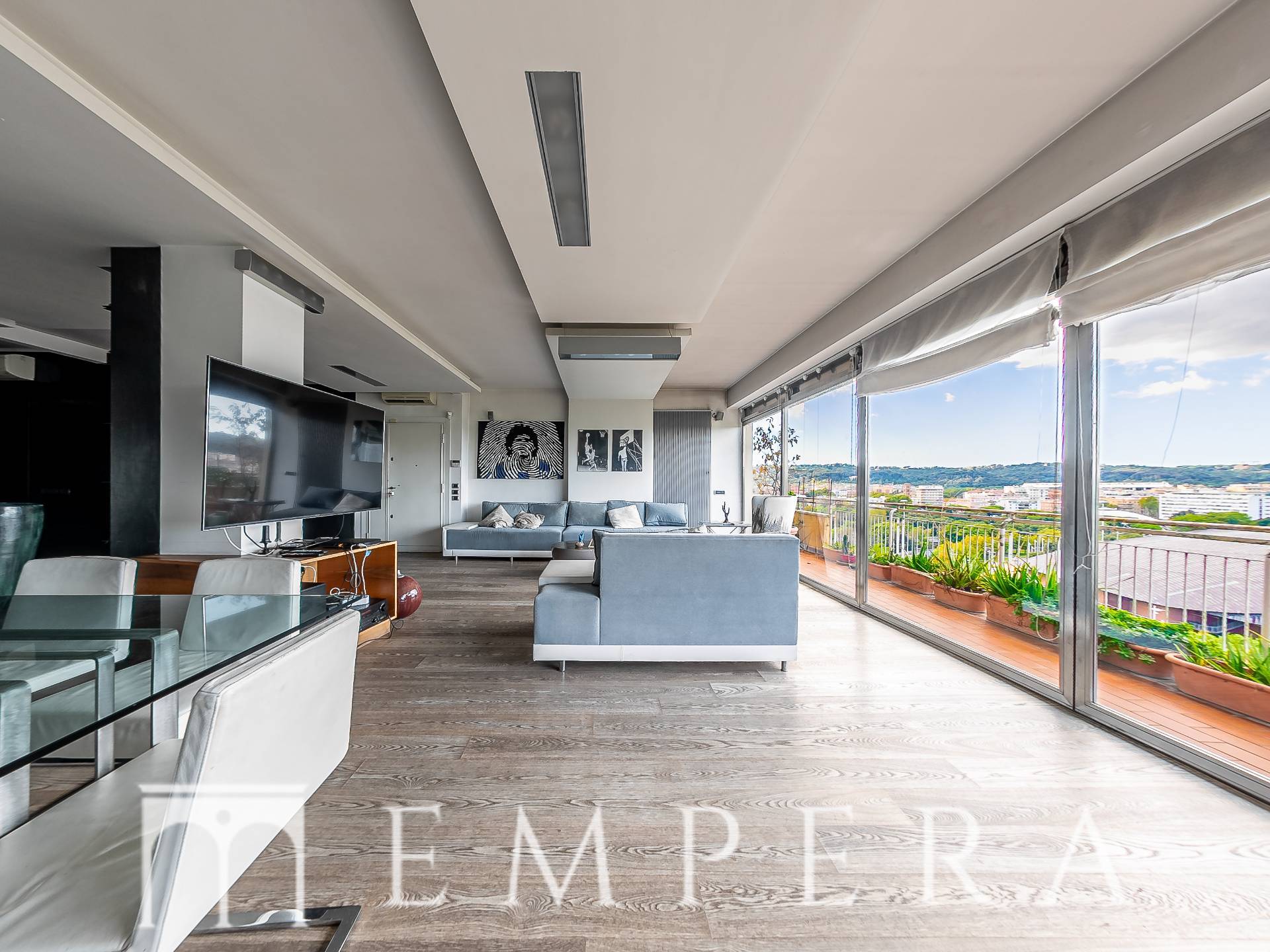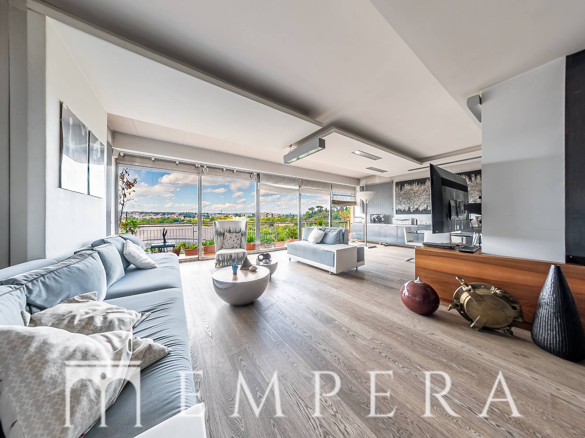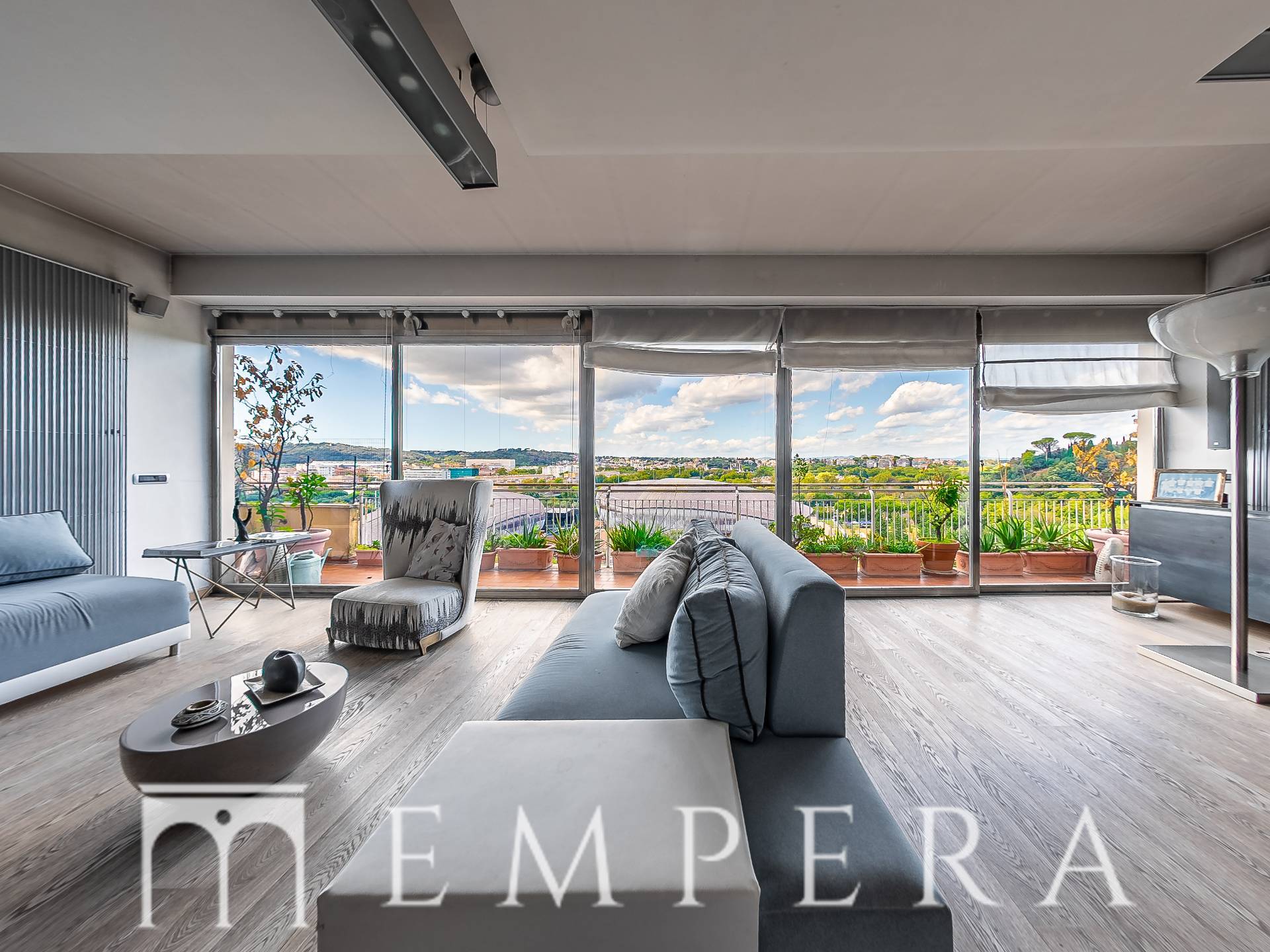 L'appartamento uno splendido attico di ampia metratura posto al quarto piano con terrazzo a livello, box auto e una magnifica vista panoramica sul versante nord di Roma. L'immobile gode di luminosit e riservatezza, in virt di una tripla esposizione e dell'assenza di fabbricati dirimpetto.
