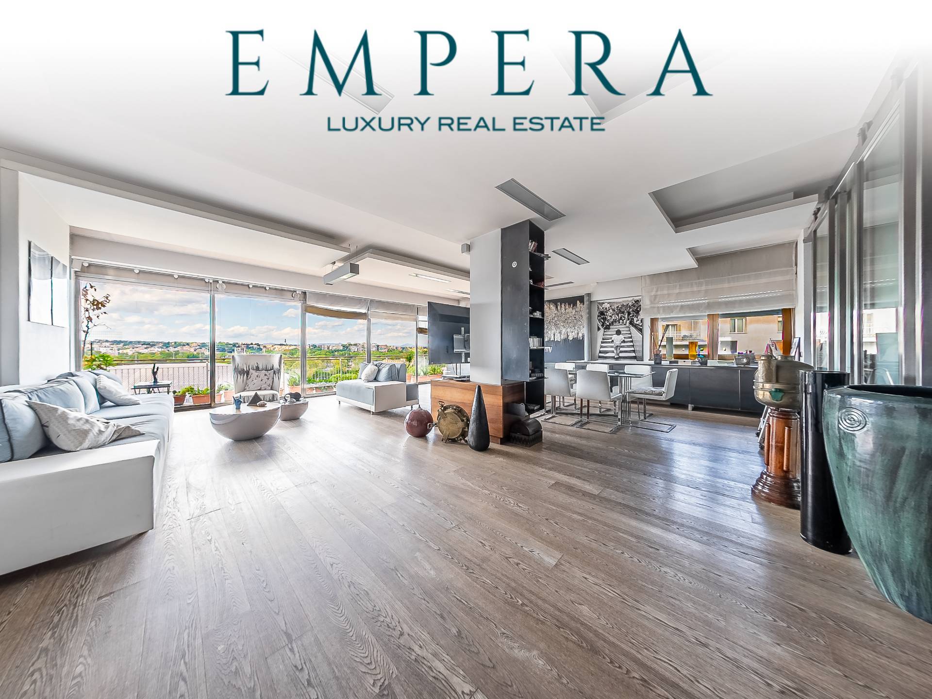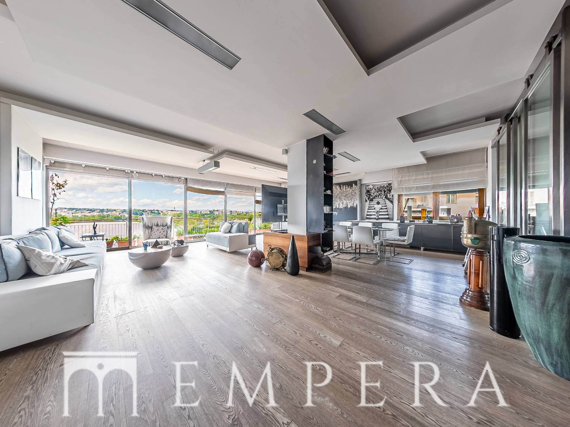 Questo splendido attico moderno situato in uno stabile signorile nella posizione pi alta dei Parioli, in via Archimede ad angolo con via di San Valentino.