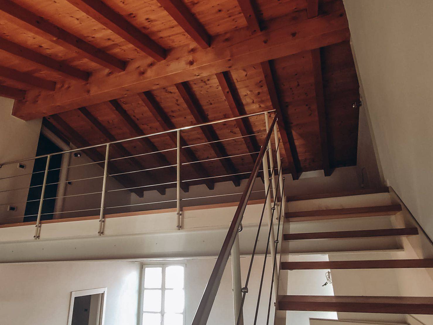 Dal soggiorno, una scala interna porta al piano superiore soppalcato, dove si trovano la terza camera da letto e il secondo bagno.