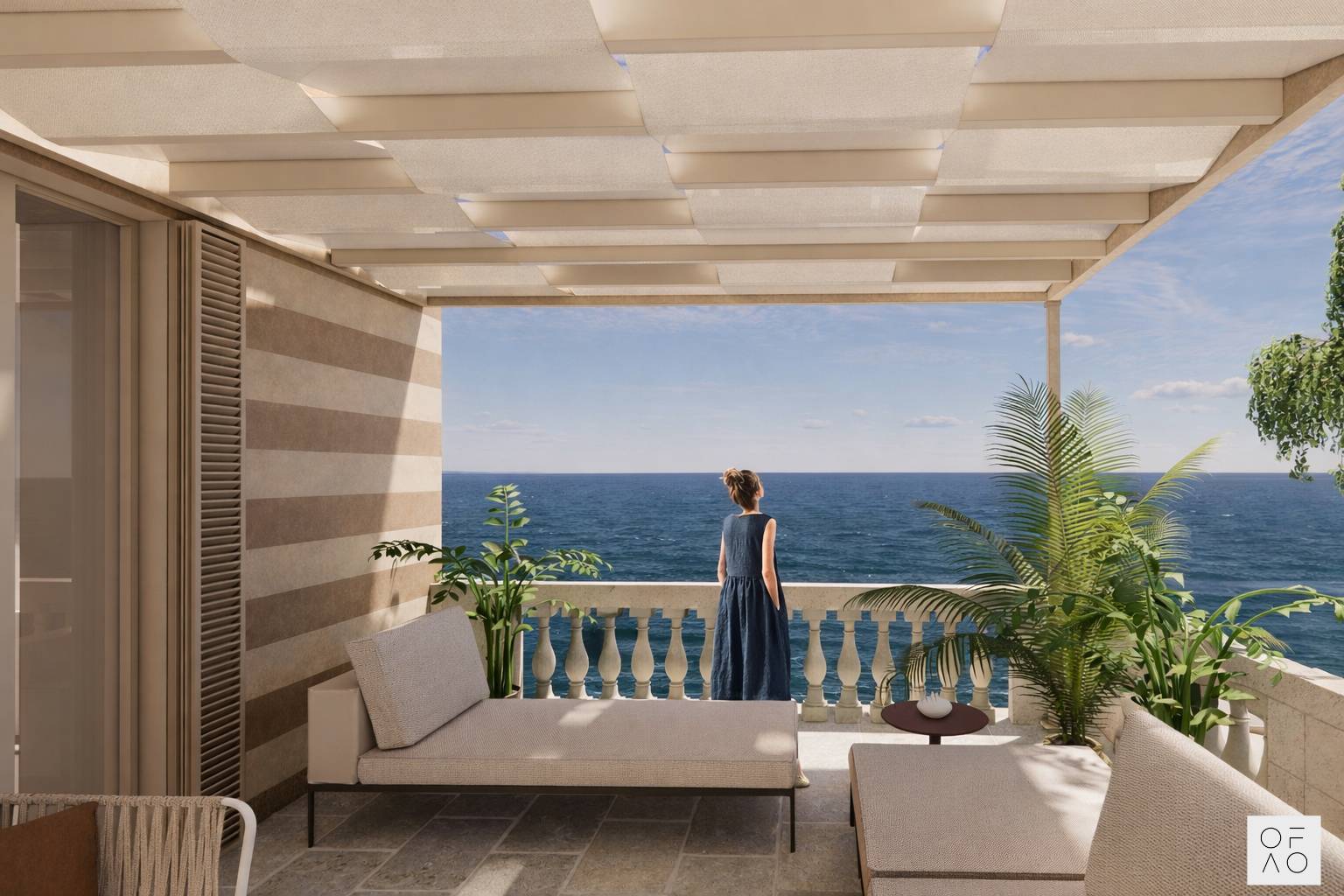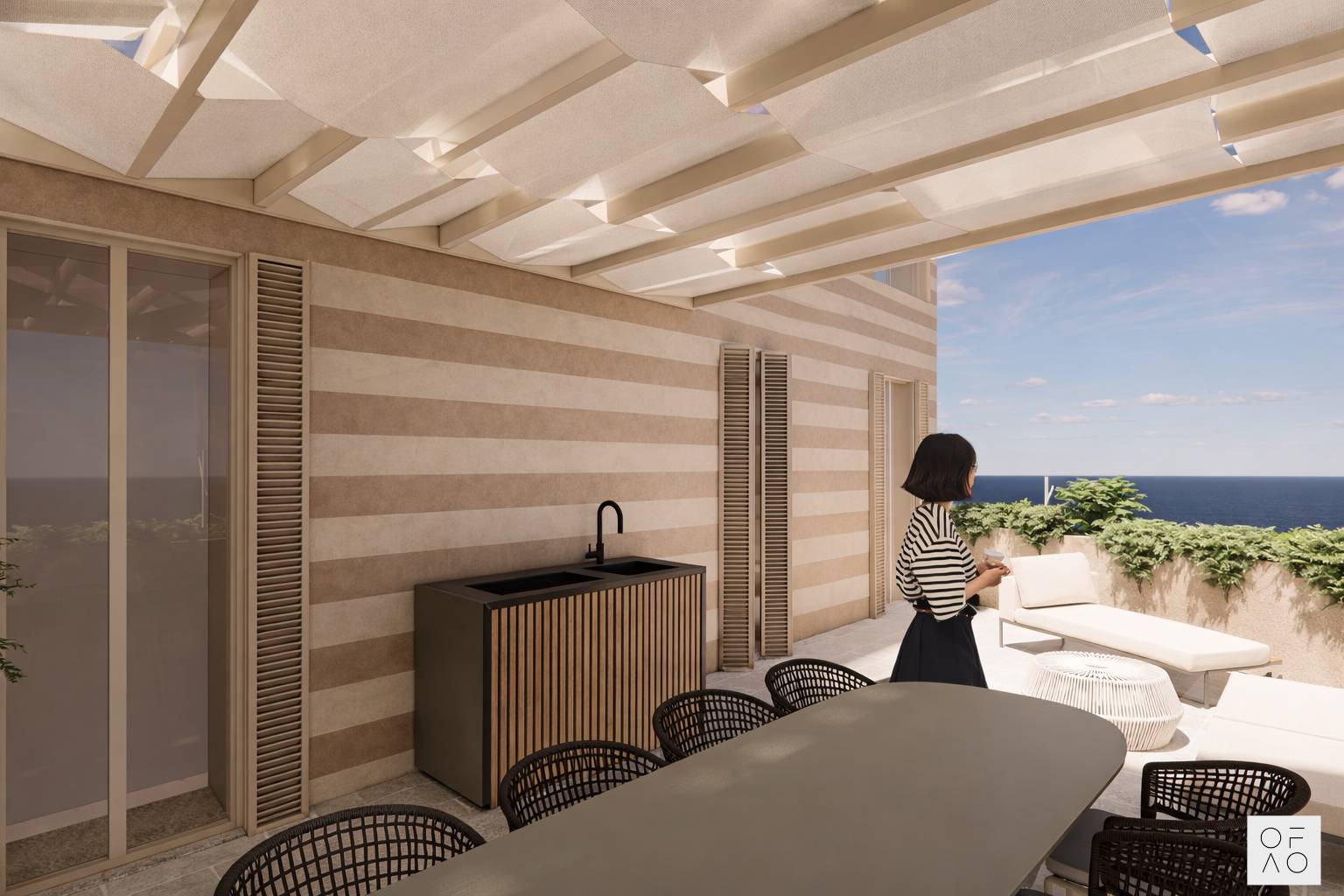 Gli interni saranno progettati con un elegante attenzione al dettaglio, combinando comfort moderni con uno stile contemporaneo ispirato allarchitettura locale.