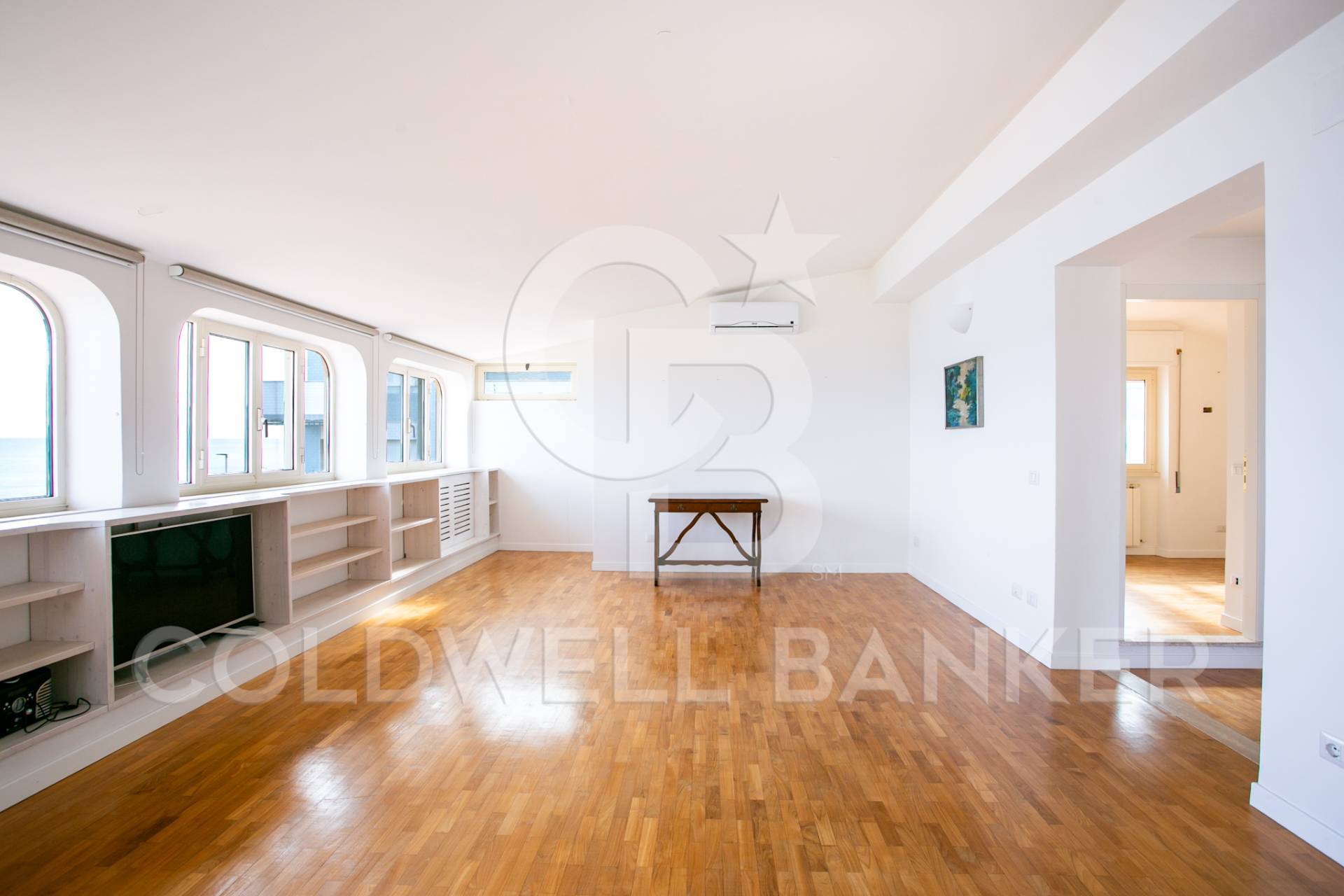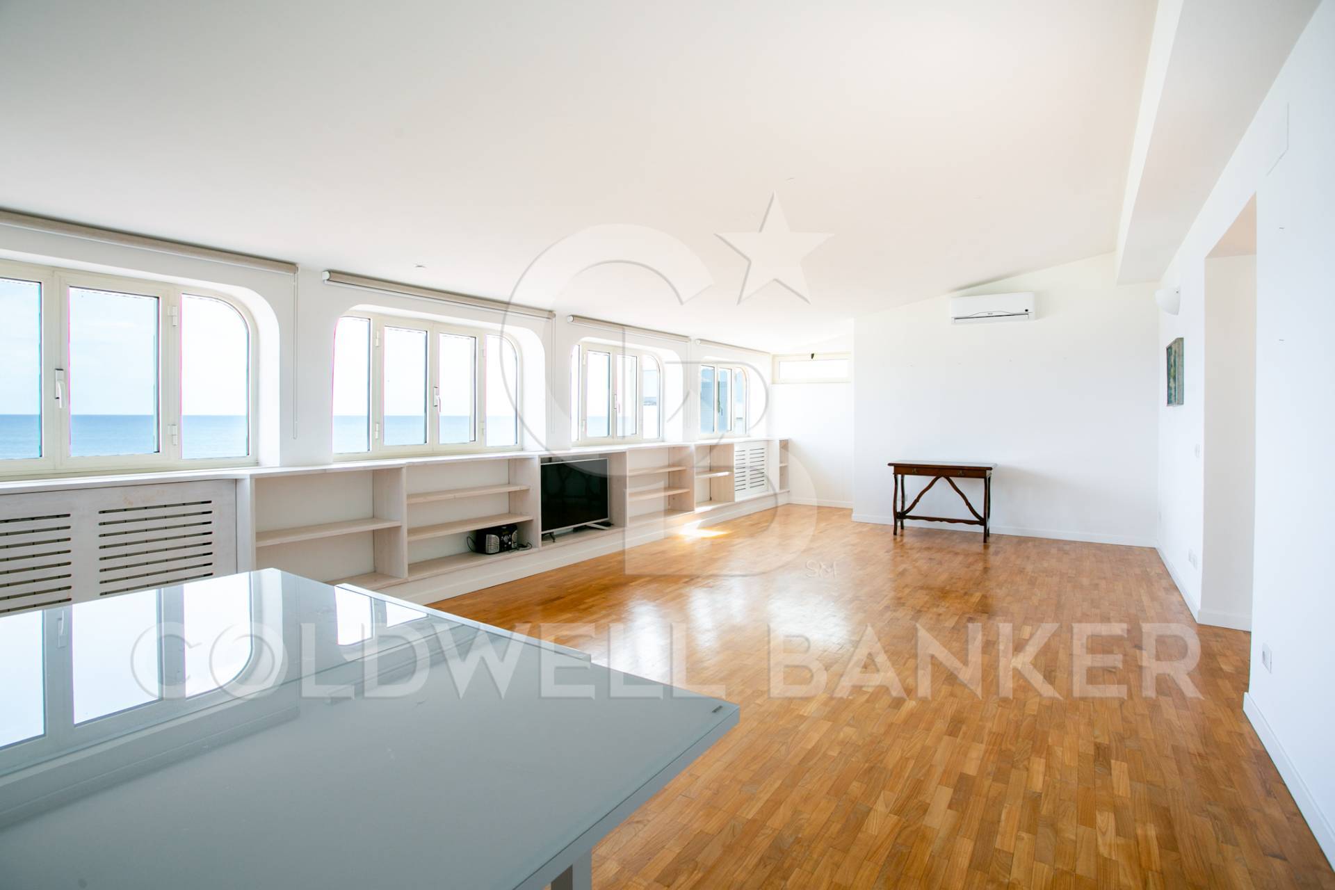 Dalle camere e dalla cucina si accede a due terrazze arredate da tende da sole da cui possiamo continuare a godere la vista del mare. Ottime le rifiniture, dal pavimento in parquet, infissi in alluminio con vetrocamera, zanzariere, riscaldamento autonomo e condizionatore caldo/freddo.