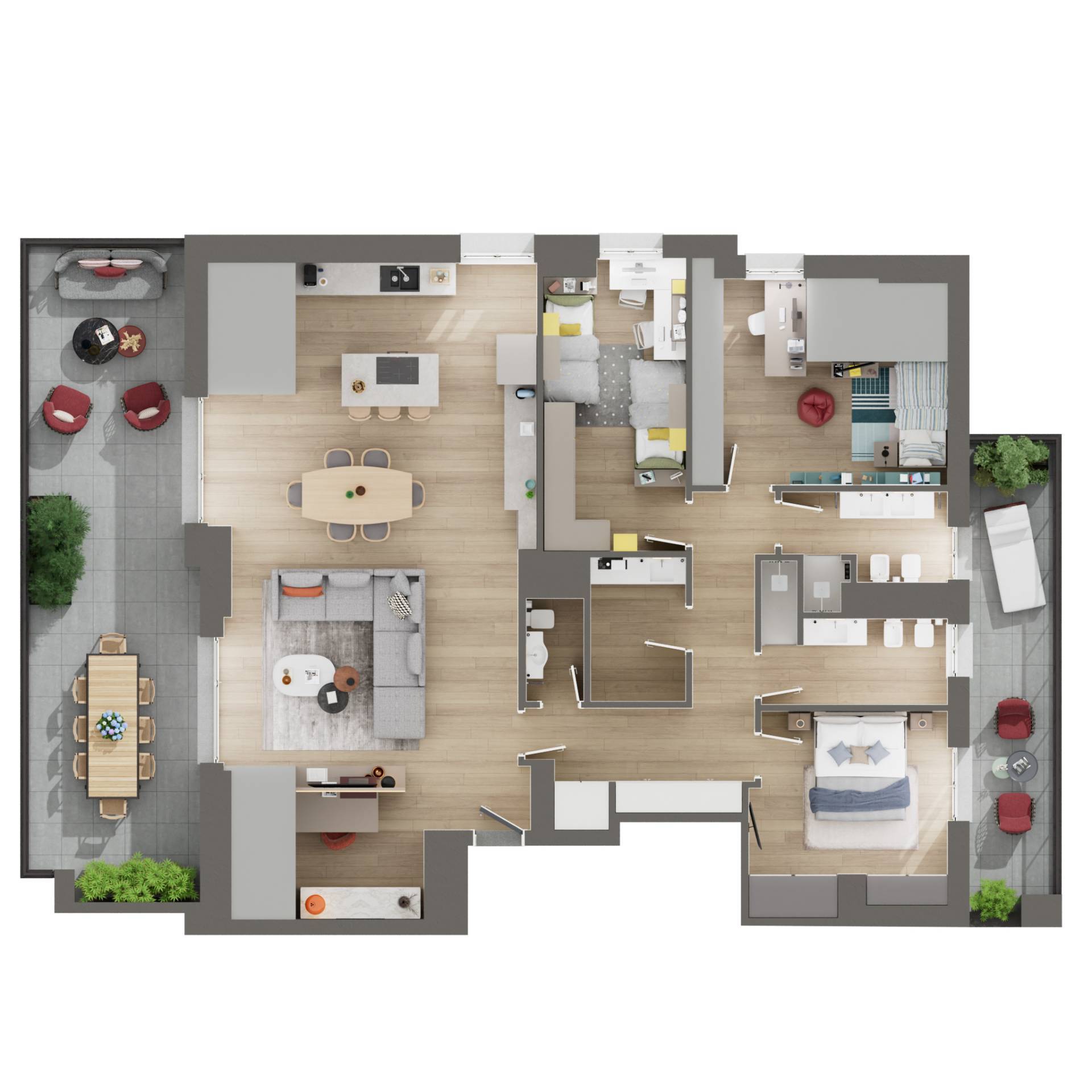 • Locali: 4 Locali (3 camere con doppi servizi)