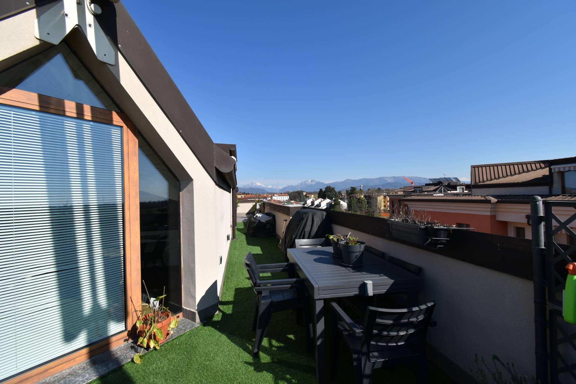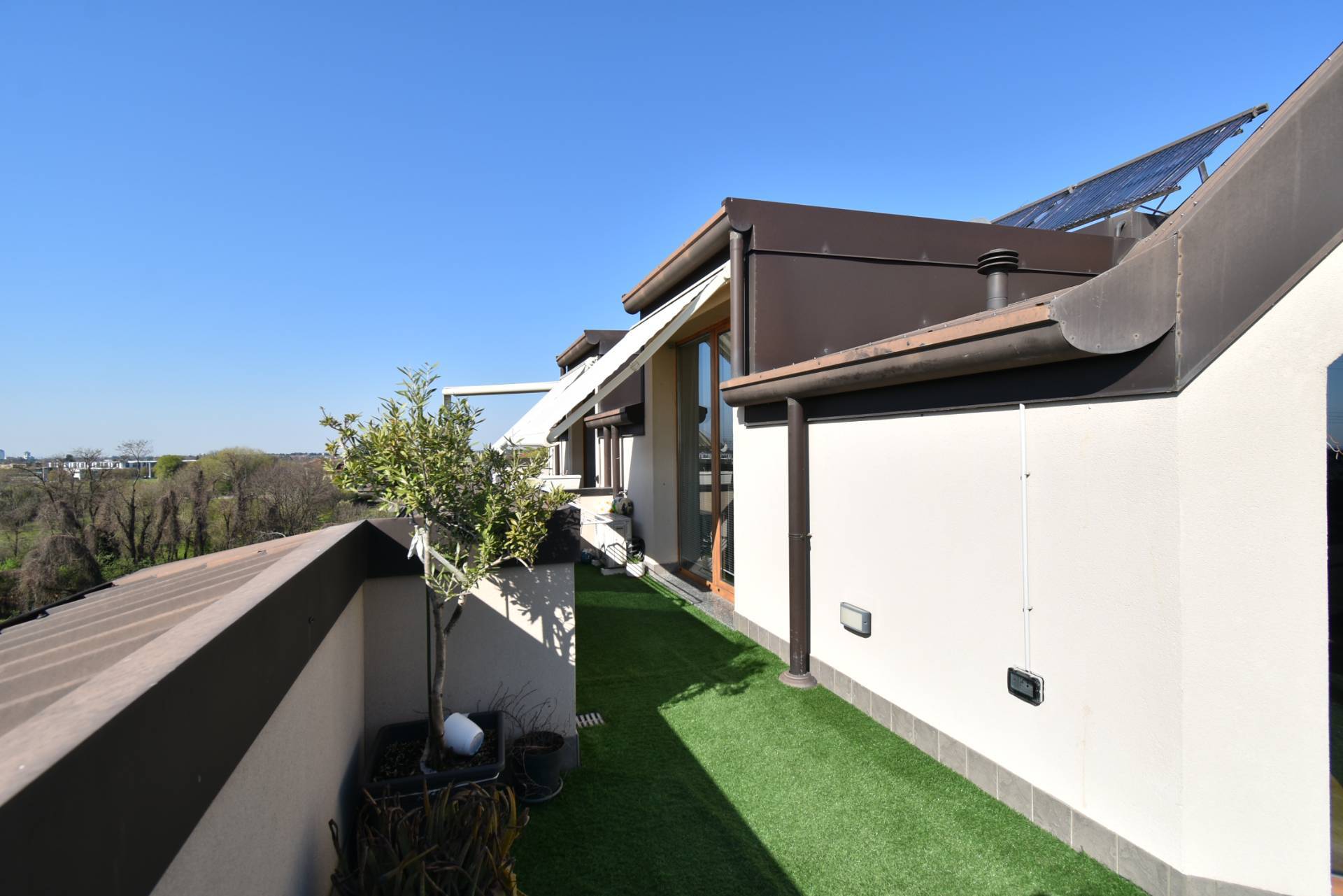 Da tutti gli ambienti si pu accedere al terrazzo di 72 mq completo di tende da sole motorizzate, con una vista panoramicissima e per godersi momenti di assoluto relax all'aria aperta.