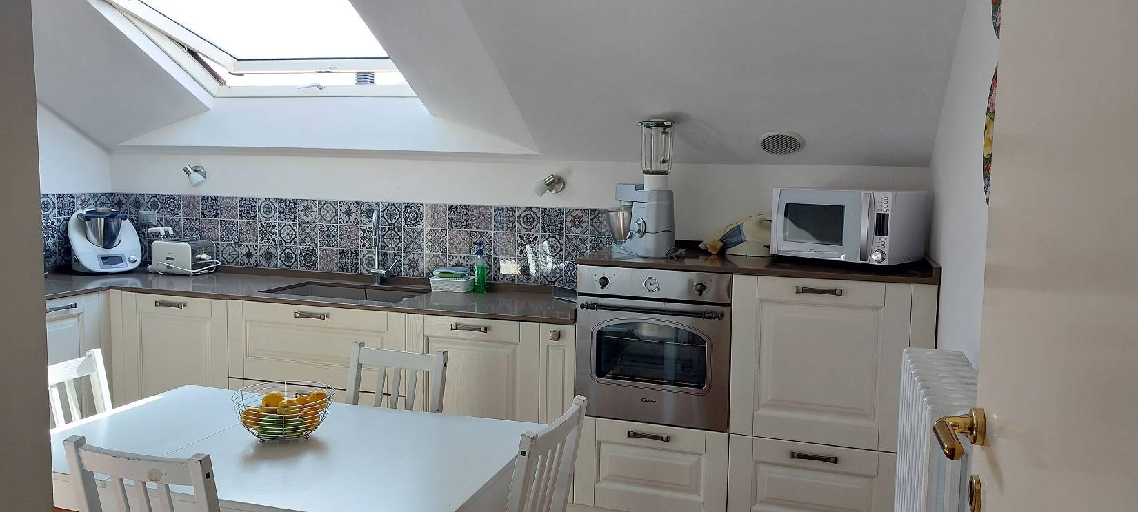 La cucina, anch'essa spaziosa e abitabile, completamente arredata e dotata di tutti gli elettrodomestici necessari.