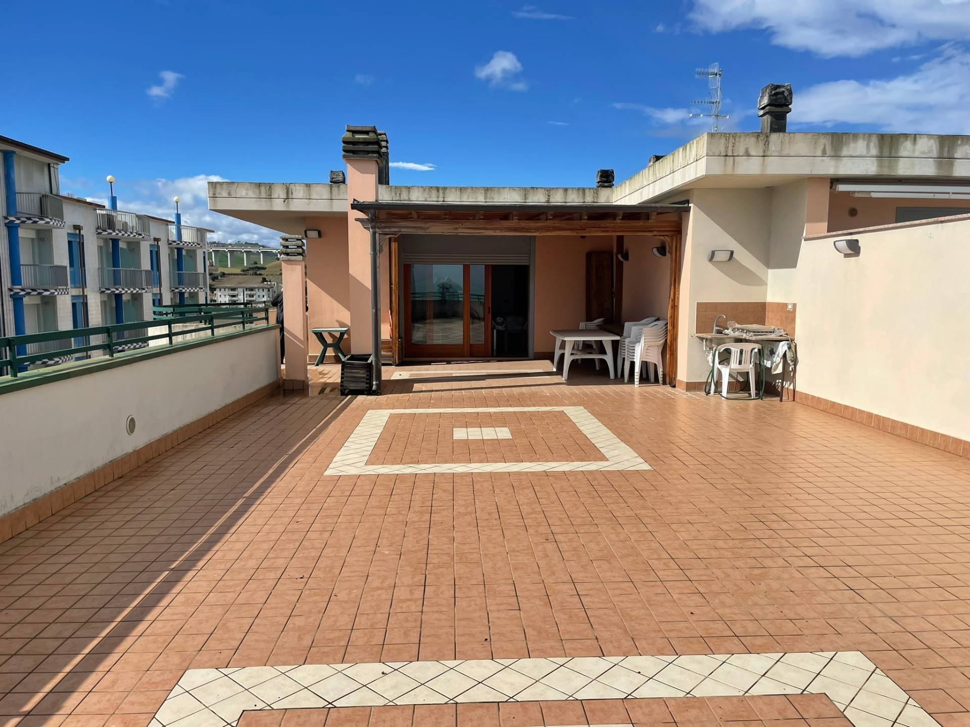 L'appartamento situato in una palazzina di recente costruzione direttamente sul lungomare di Tortoreto Lido. Lo splendido terrazzo di 80 mq direttamente sul mare adriatico offre la sensazione di una poppa di una nave, l'ampio finestrone del soggiorno lascia vedere il mare anche da dentro l'appartamento.