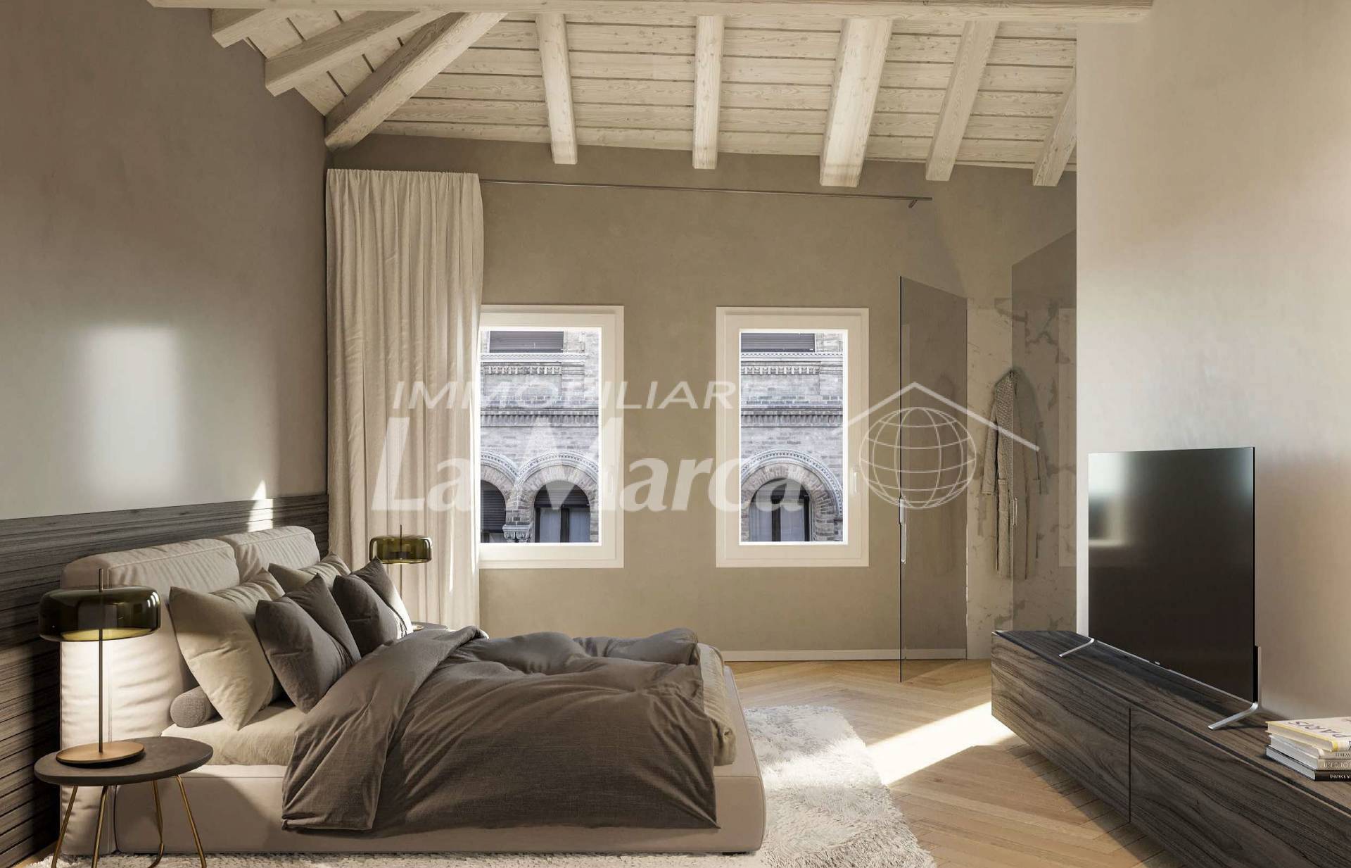 Nel cuore del centro storico, importante attico inserito in palazzo di pregio novecentesco, frutto di un accurato intervento conservativo.
