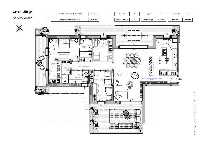 Attico tre camere + studio in vendita a ***.*******.** prima periferia cittadina, proponiamo in vendita questo splendido attico posto all'ultimo piano di un moderno e stiloso contesto condominiale in fase di realizzazione, con consegna prevista ottobre/novembre 2025.L'immobile, inserito in un polmone verde alle porte della citta', cosi' distribuito: zona giorno/pranzo con cucina di 60 mq, comodo disimpegno, tre camere letto di cui la principale con bagno personale e cabina armadio e/o studio, secondo bagno finestrato ed ulteriore lavanderia/ripostiglio.