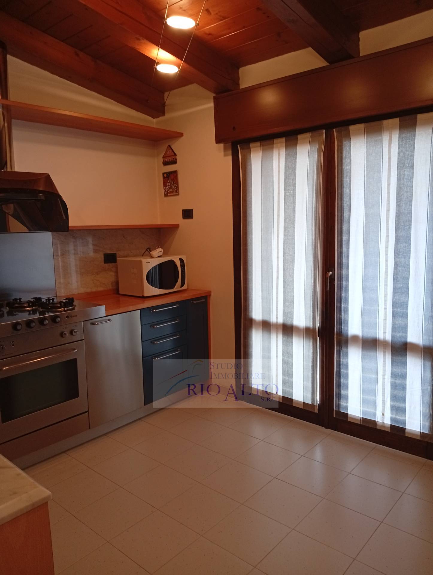 Le travi a vista che attraversano lintera area living conferiscono un carattere caldo e autentico, mentre il pavimento in parquet arricchito da raffinati intarsi in sassi del Piave dona un tocco di unicit e artigianalit difficilmente riscontrabile in altre soluzioni della zona. Ogni dettaglio pensato per creare unatmosfera elegante ma al tempo stesso familiare, ideale per chi ama vivere la casa come luogo di benessere e convivialit.