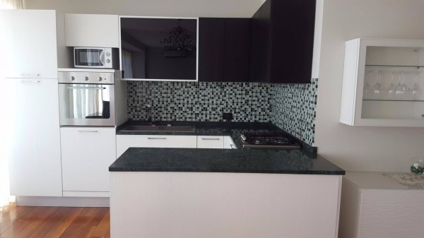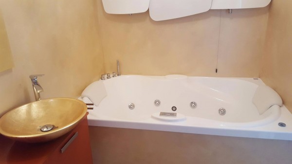 Il tutto completato da un terrazzo abitabile sul fronte strada e da un altro dotato di tutti i servizi sul retro Le finiture sono di lusso: pavimenti completamente in parquet, realizzato da falegname navale in teak la cucina ed il piano del camino rivestiti con con marmo verde Alpi infissi parte in alluminio quelli grandi frontestrada ed in PVC quelli posti sul retro dotati di avvolgibili elettrici con chiusure in alluminio coibentato un bagno con doccia idromassaggio, cromoterapia e rivestimento in mosaico scuro,altro bagno con vasca idromassaggio per due persone con rivestimento in pietra di travertino.