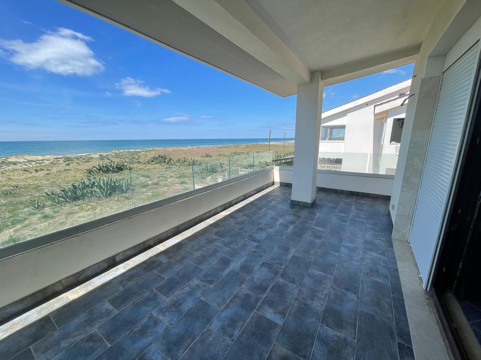 Marina di Ardea, lungomare degli ardeatini, attico sul mare. L'immobile, di nuova costruzione, rifinito con materiali di pregio, di ultima generazione composto da: un ampio salone con angolo cottura che affaccia sul terrazzo con splendida vista mare, una camera matrimoniale con accesso al balcone, due camere da letto, servizio con sanitari sospesi e ampia doccia walk in e posto auto. Soffitti con travi a vista, porta blindata, soppalco e fari a led. A pochissimi metri dal mare e da tutti i servizi di prima necessit come negozi, supermercati.