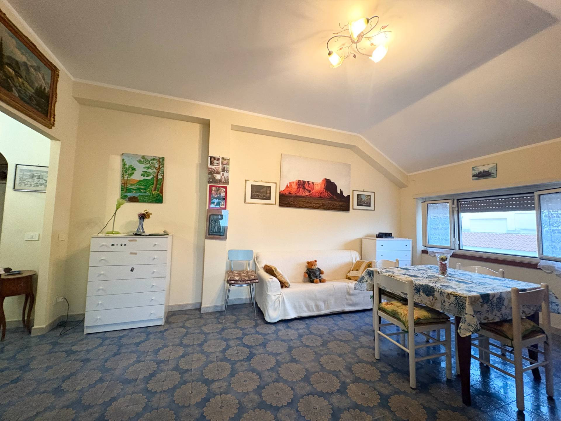 L'immobile composto da ingresso, ampio salone con uscita al delizioso terrazzo chiuso vista mare, camera matrimoniale, cucina abitabile e servizio finestrati.
