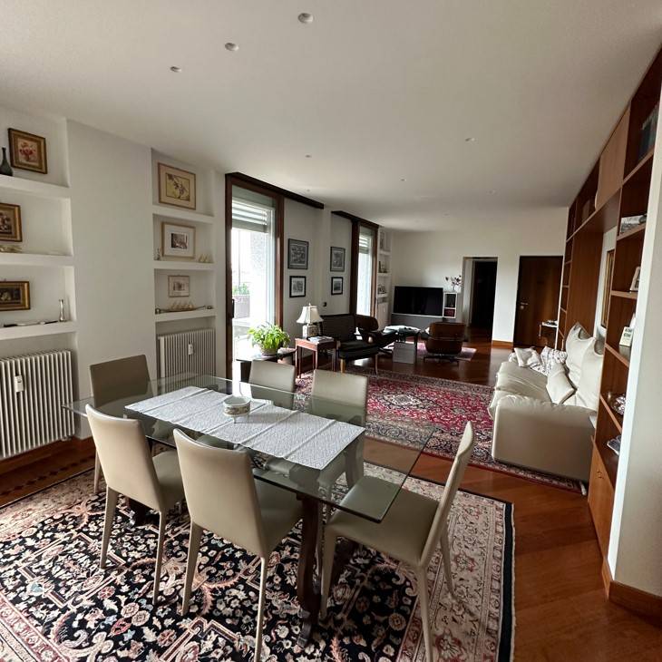 L'appartamento di 240 mq + 24 mq di balcone composto da 3 camere da letto 1 studio e 3 bagni, dispone di 2 ampi e luminosi soggiorni che si affacciano sulla via Cardinal Tosi e piazza San Giovanni, una cucina e un angolo cottura separato con finiture di pregio.