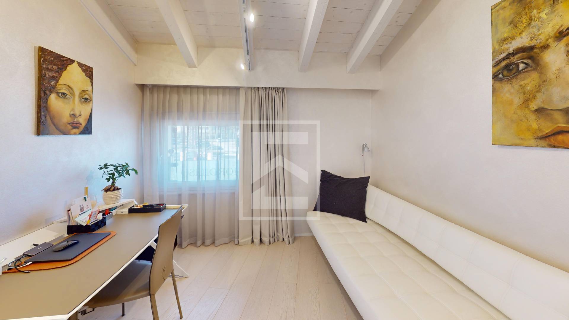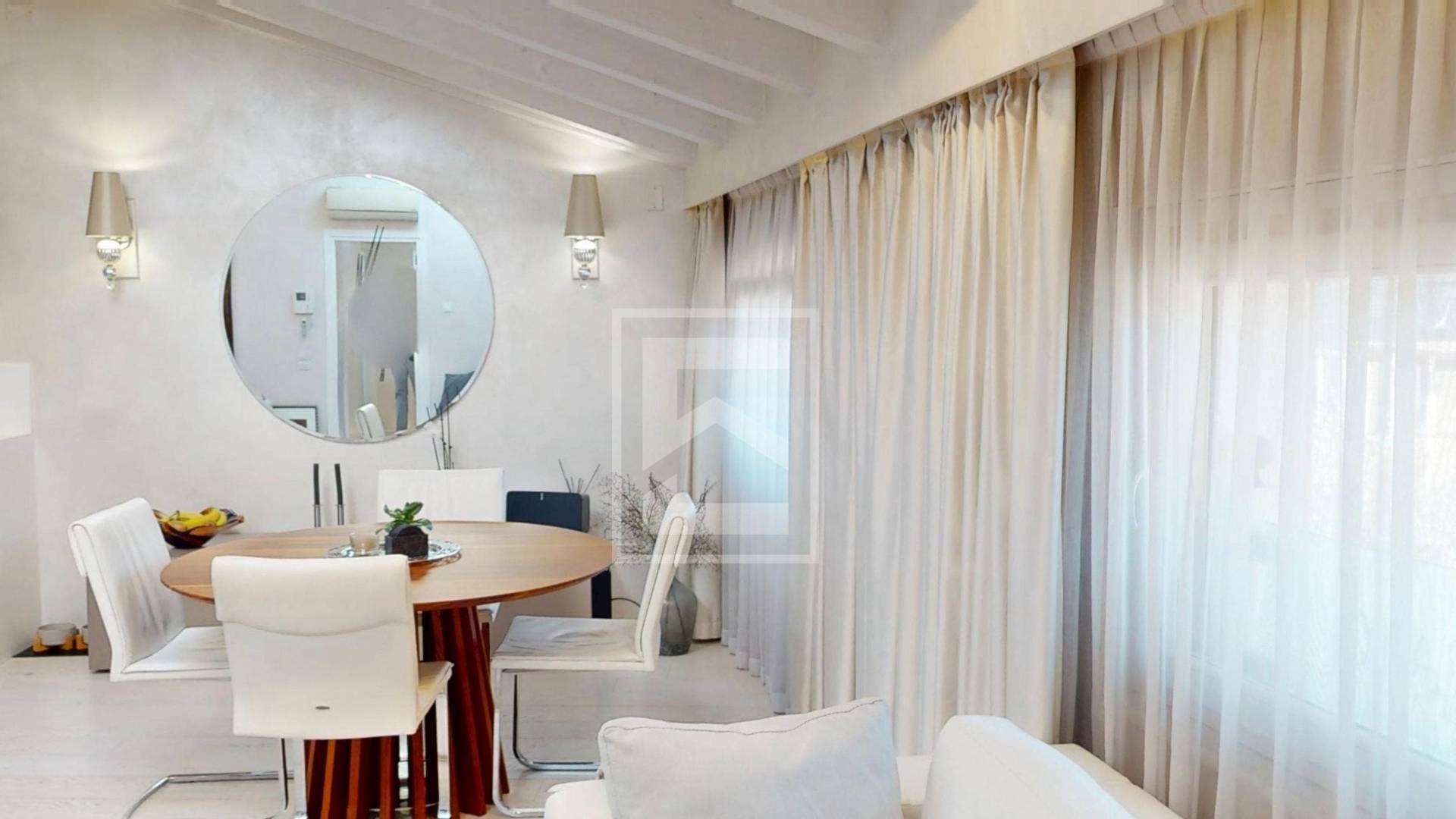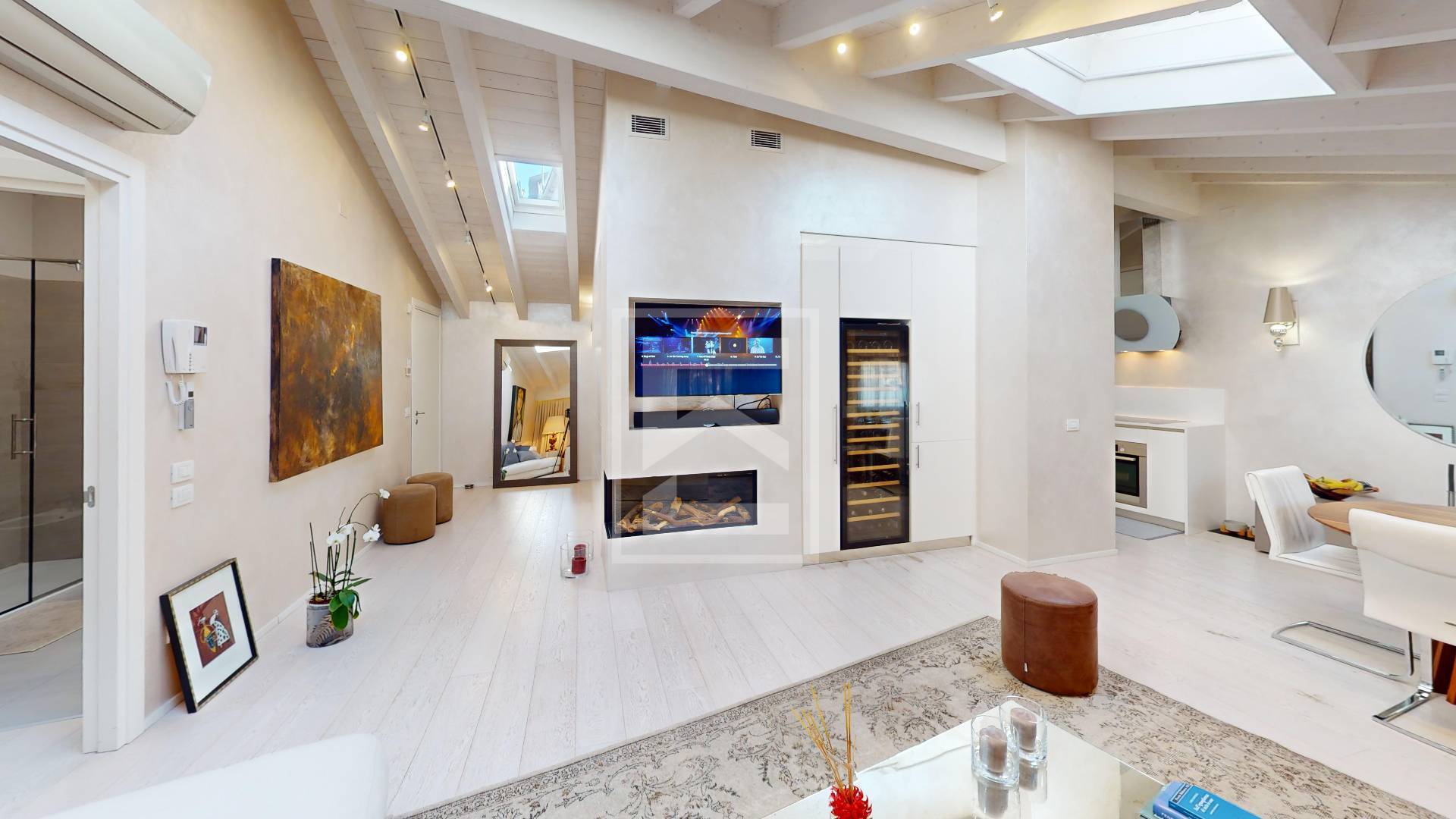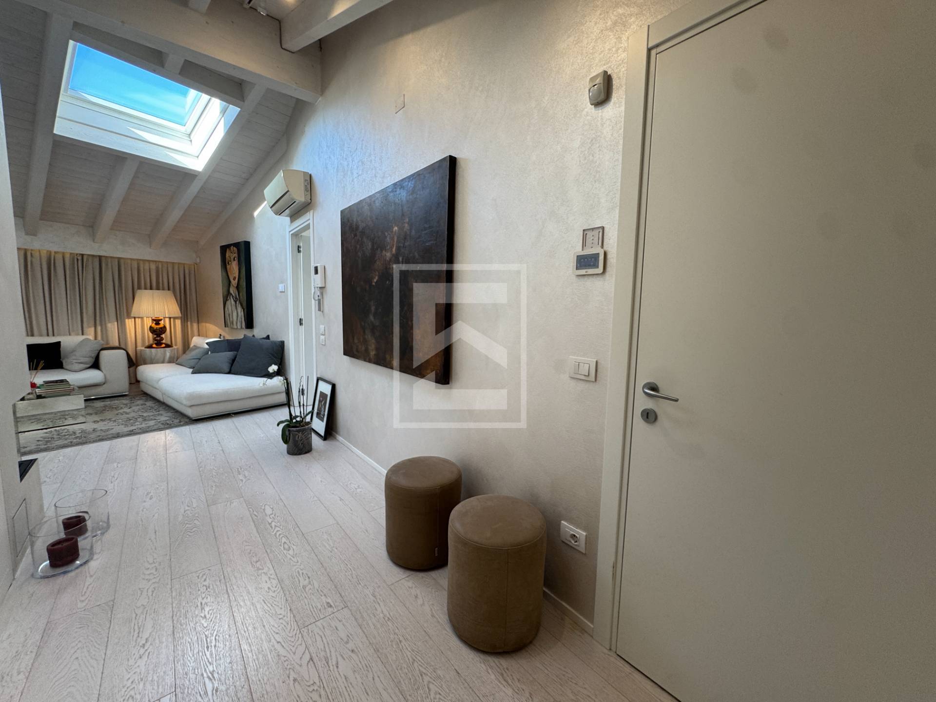 Gli ambienti, ampi e luminosi, sono valorizzati da eleganti travi a vista bianche che conferiscono carattere e calore allintero appartamento.