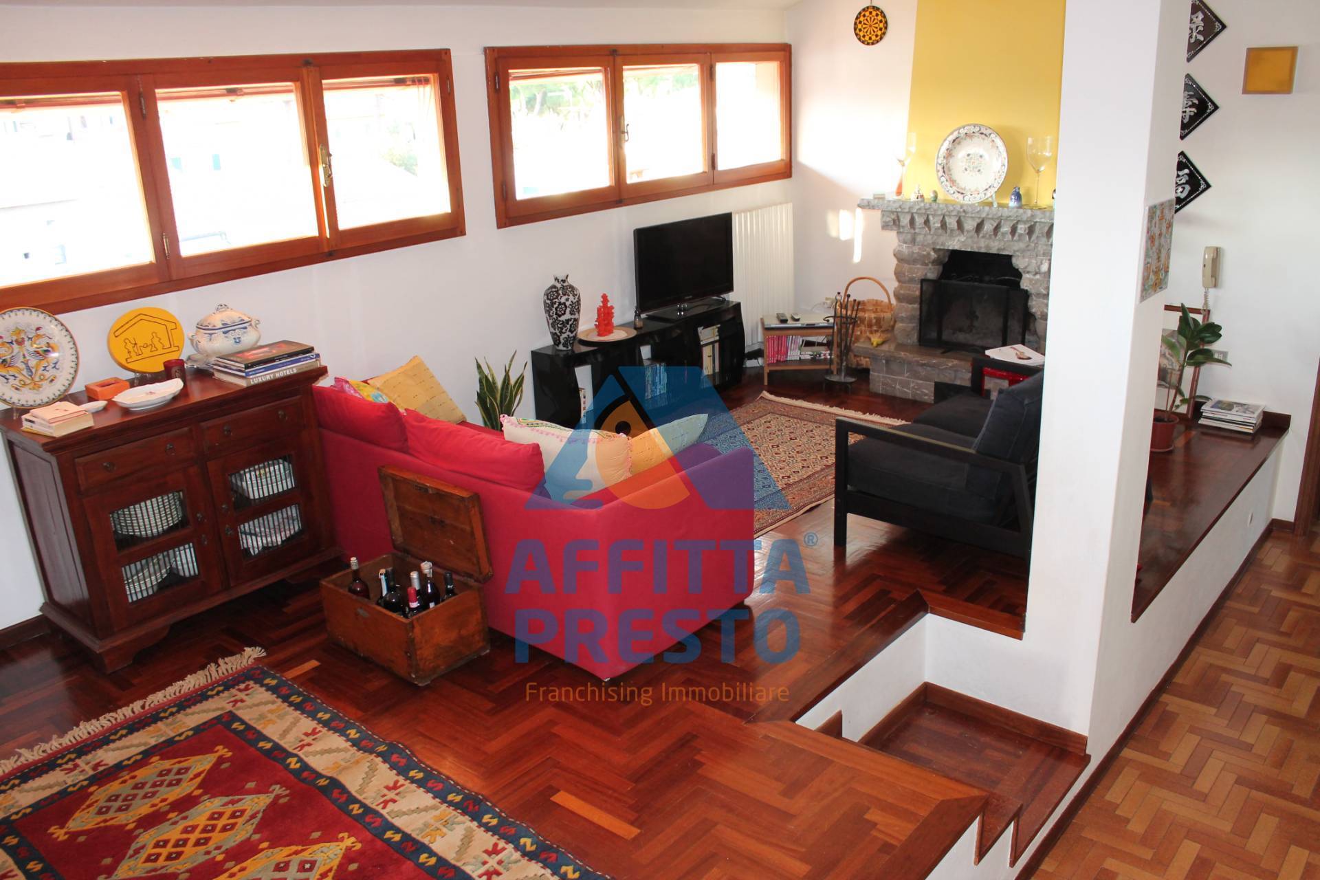 Un arredamento e colori caldi accoglienti danno un tocco di design unico con parquet a pavimento a spina italiana.