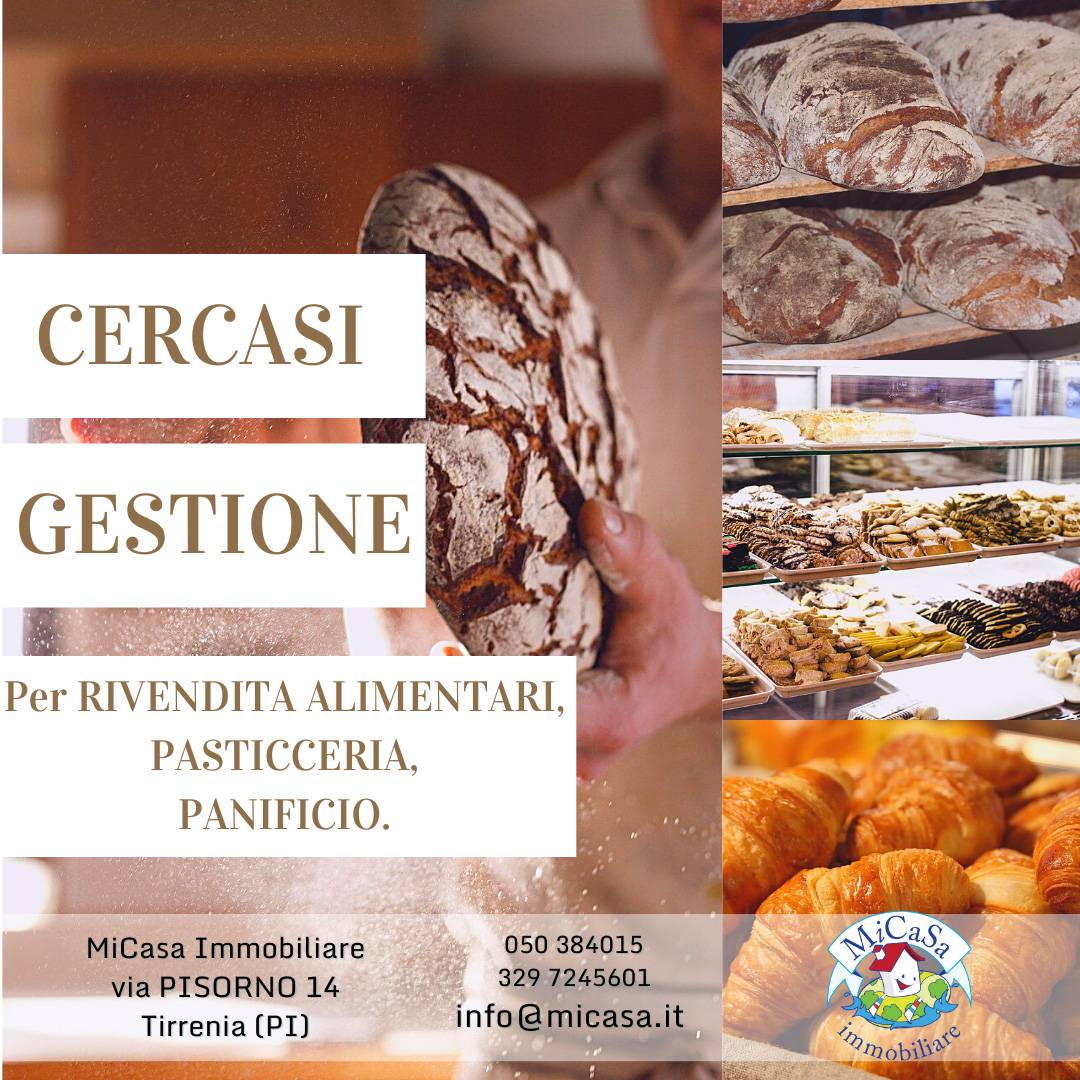 Affittasi a Tirrenia (PI) NOSTRA ESCLUSIVA! In posizione centrale con forte passaggio, proponiamo GESTIONE RIVENDITA ALIMENTARI, PANE E PASTICCERIA, con ampia vetrina fronte strada e spazio esterno attrezzabile.