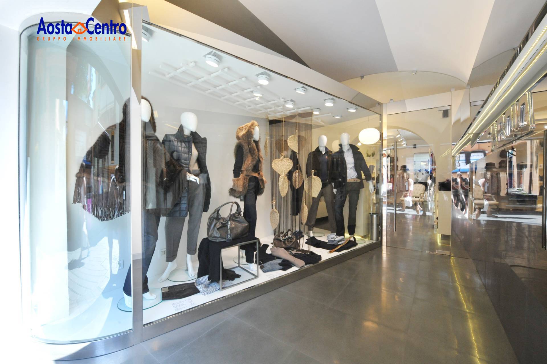 Il locale si compone di ingresso con ampia vetrina, all'interno ha una superficie di circa mq 54 totali allestita per l'esposizione dei capi e alla vendita, un magazzino con servizio e una cantina.