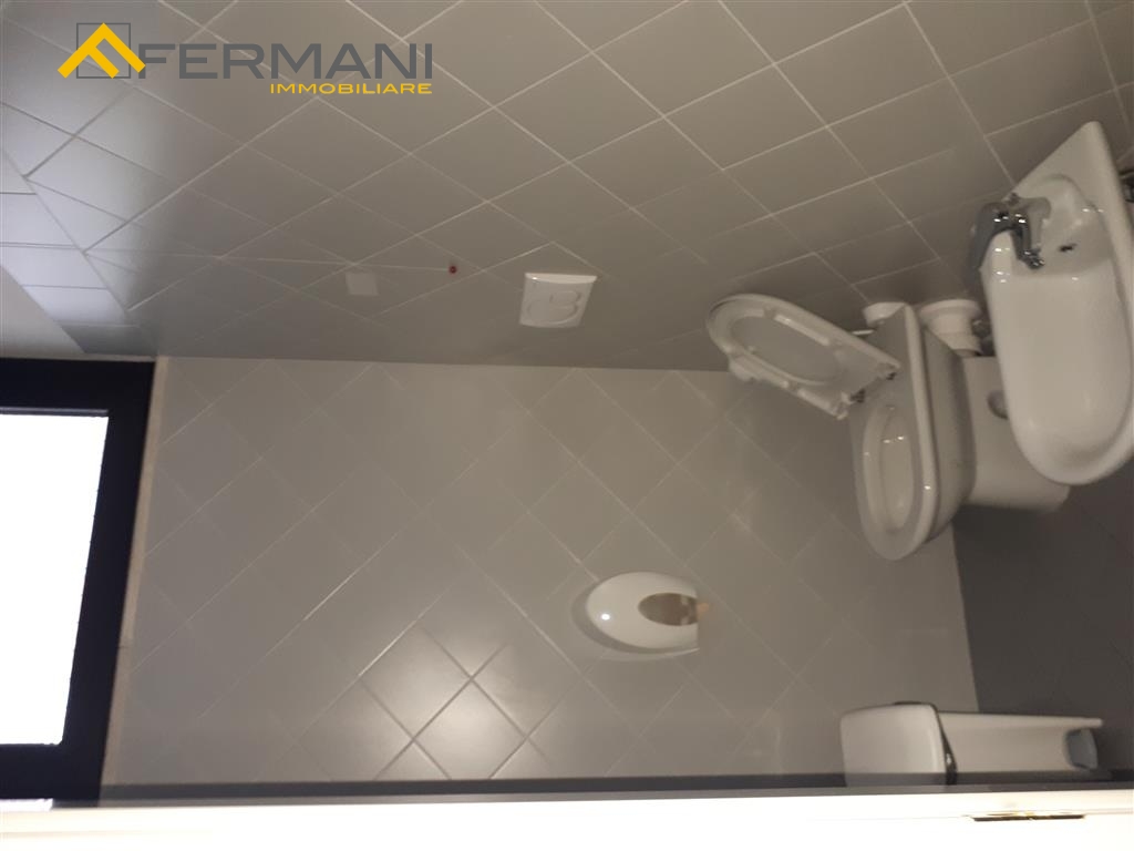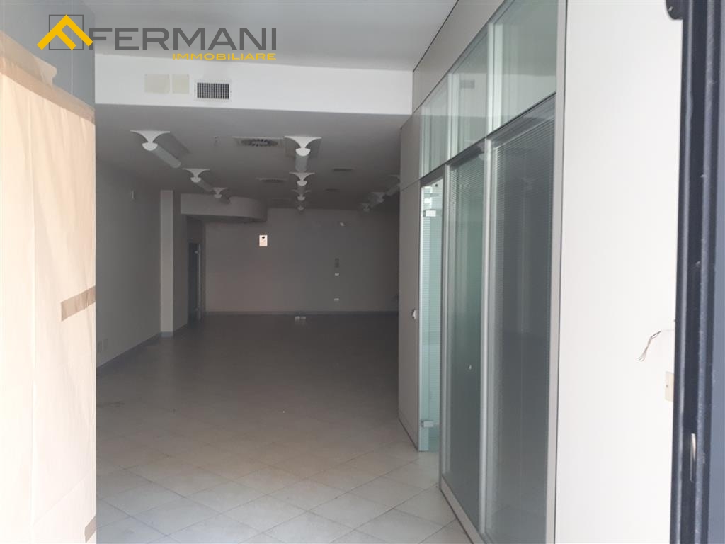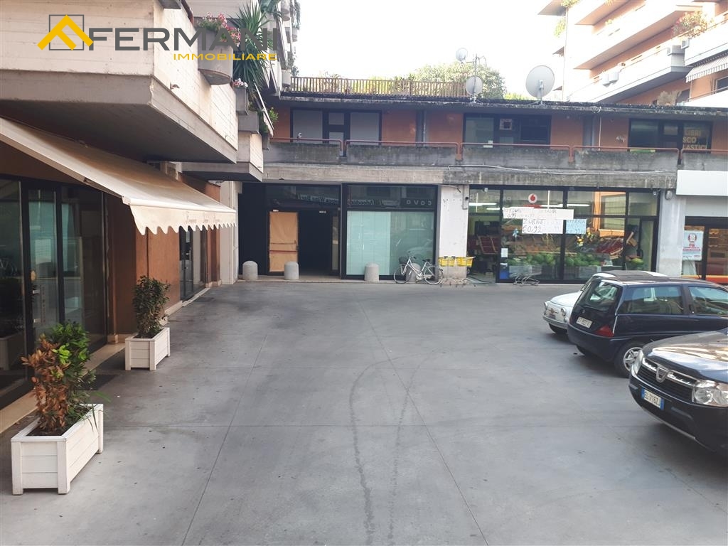 L'unit commerciale principale ha accesso da Via E. Mari e si affaccia su uno spazio comune con due ampie vetrine, di cui una fissa e l'altra apribile.